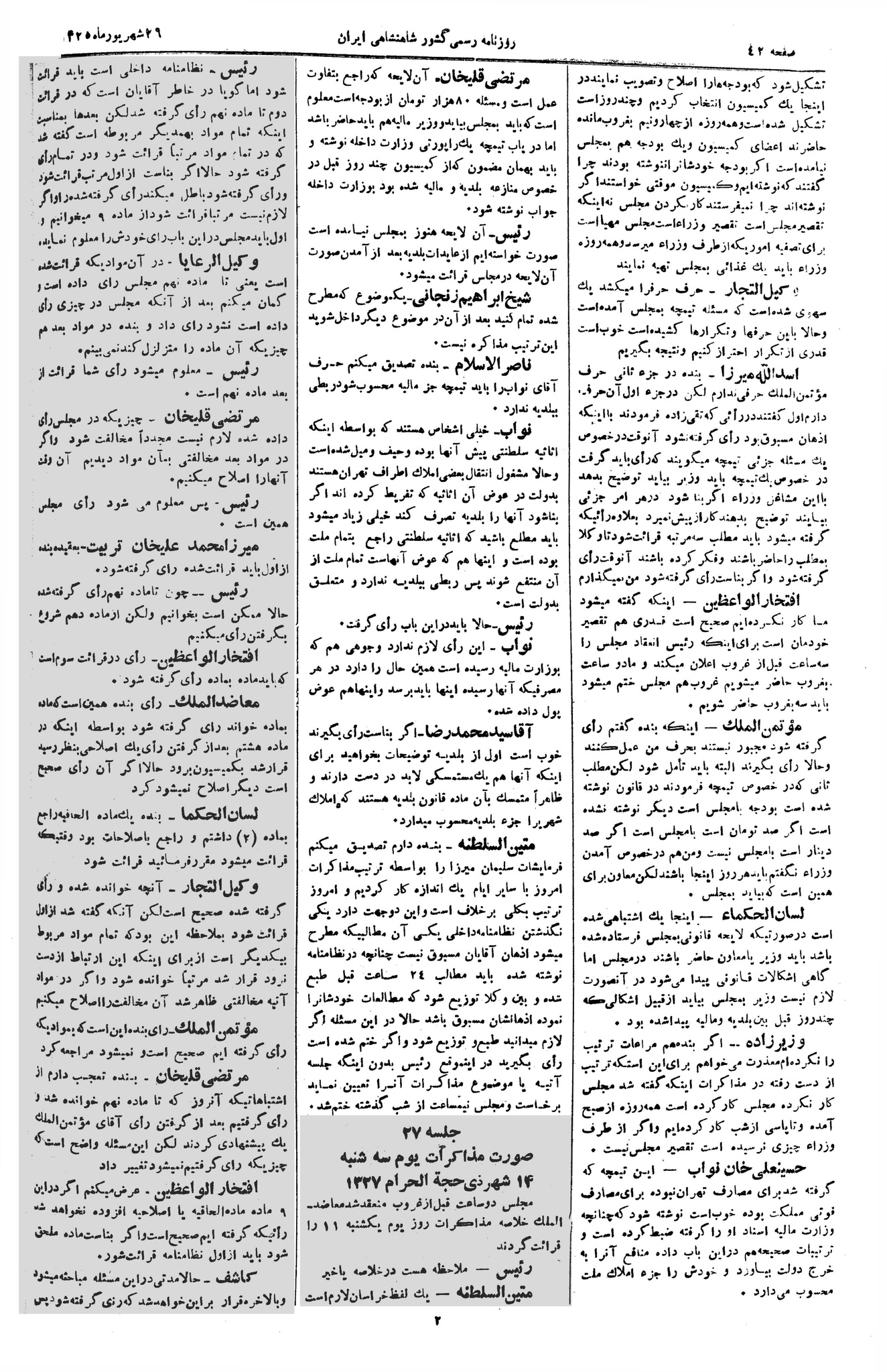 | کنونی | ۱۴ آوریل ۲۰۱۳، ساعت ۰۵:۴۴ | ۶٬۰۵۰×۹٬۰۳۳، ۴ صفحه (۹٫۴۴ مگابایت) | Bijan (گفتگو | مشارکتها) | {{PD-Iran}} رده:مجلس شورای ملی مذاکرات دوره قانونگذاری دوم - ۲۴ آبان ۱۲۸۸ تا ۲۳ دی ۱۲۹۰ |