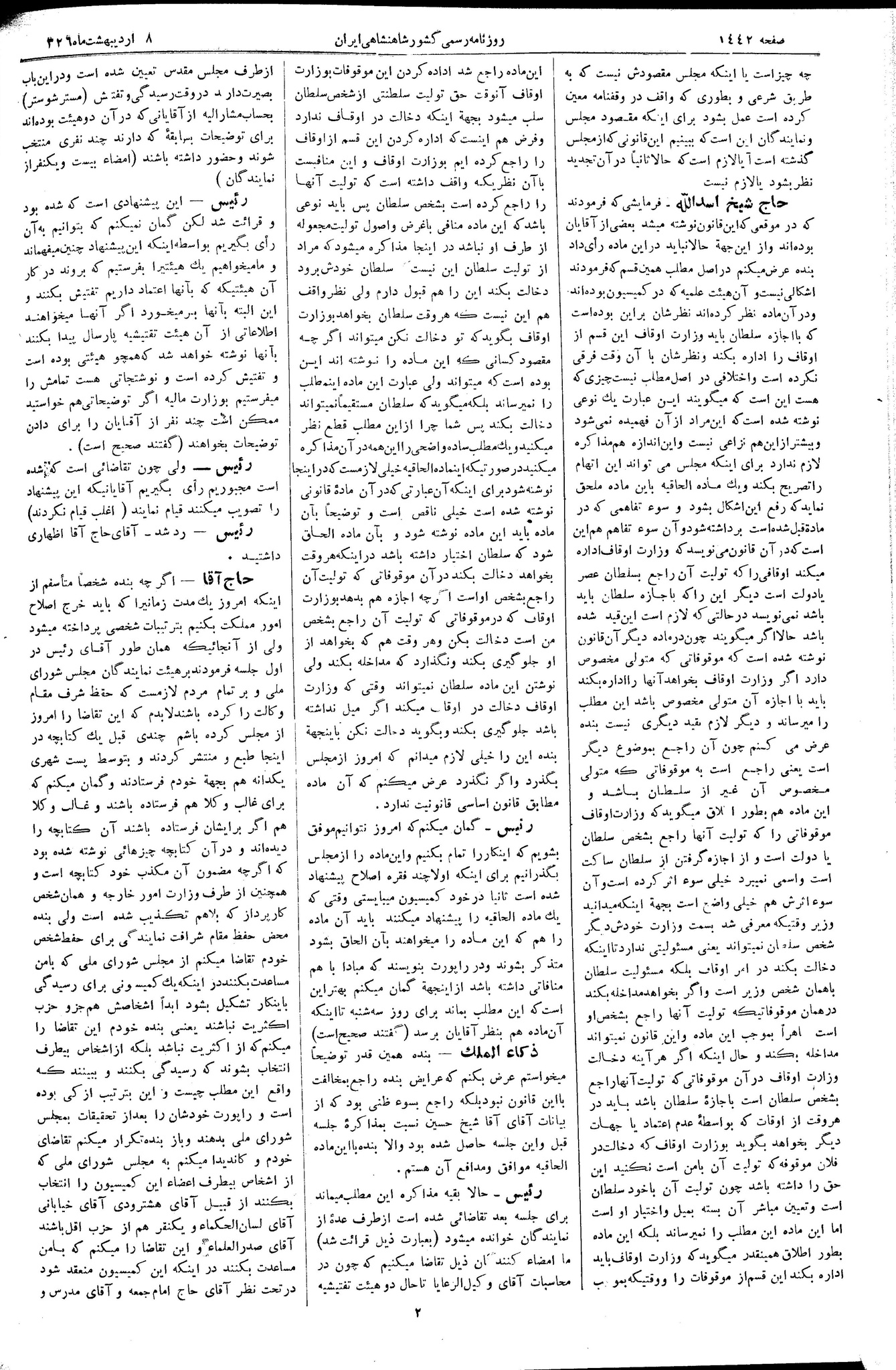 | کنونی | ۲۲ آوریل ۲۰۱۳، ساعت ۱۳:۵۲ | ۶٬۰۰۴×۸٬۹۶۸، ۷ صفحه (۱۷٫۴۲ مگابایت) | Bijan (گفتگو | مشارکتها) | {{PD-Iran}} رده:مجلس شورای ملی مذاکرات دوره قانونگذاری دوم - ۲۴ آبان ۱۲۸۸ تا ۲۳ دی ۱۲۹۰ |
