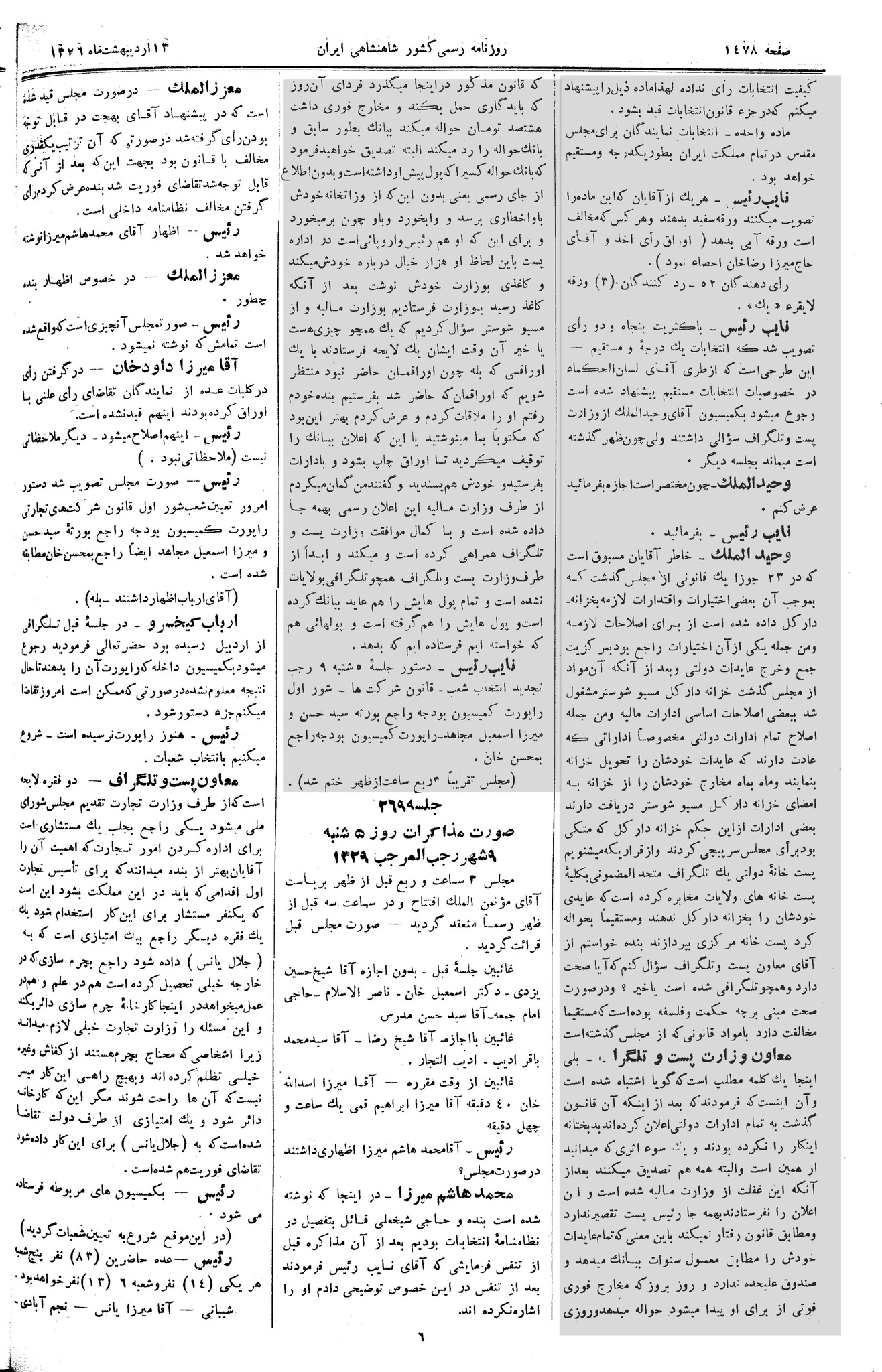 | کنونی | ۲۲ آوریل ۲۰۱۳، ساعت ۱۵:۴۳ | ۵٬۶۷۵×۸٬۸۳۳، ۶ صفحه (۱۵٫۷۹ مگابایت) | Bijan (گفتگو | مشارکتها) | {{PD-Iran}} رده:مجلس شورای ملی مذاکرات دوره قانونگذاری دوم - ۲۴ آبان ۱۲۸۸ تا ۲۳ دی ۱۲۹۰ |