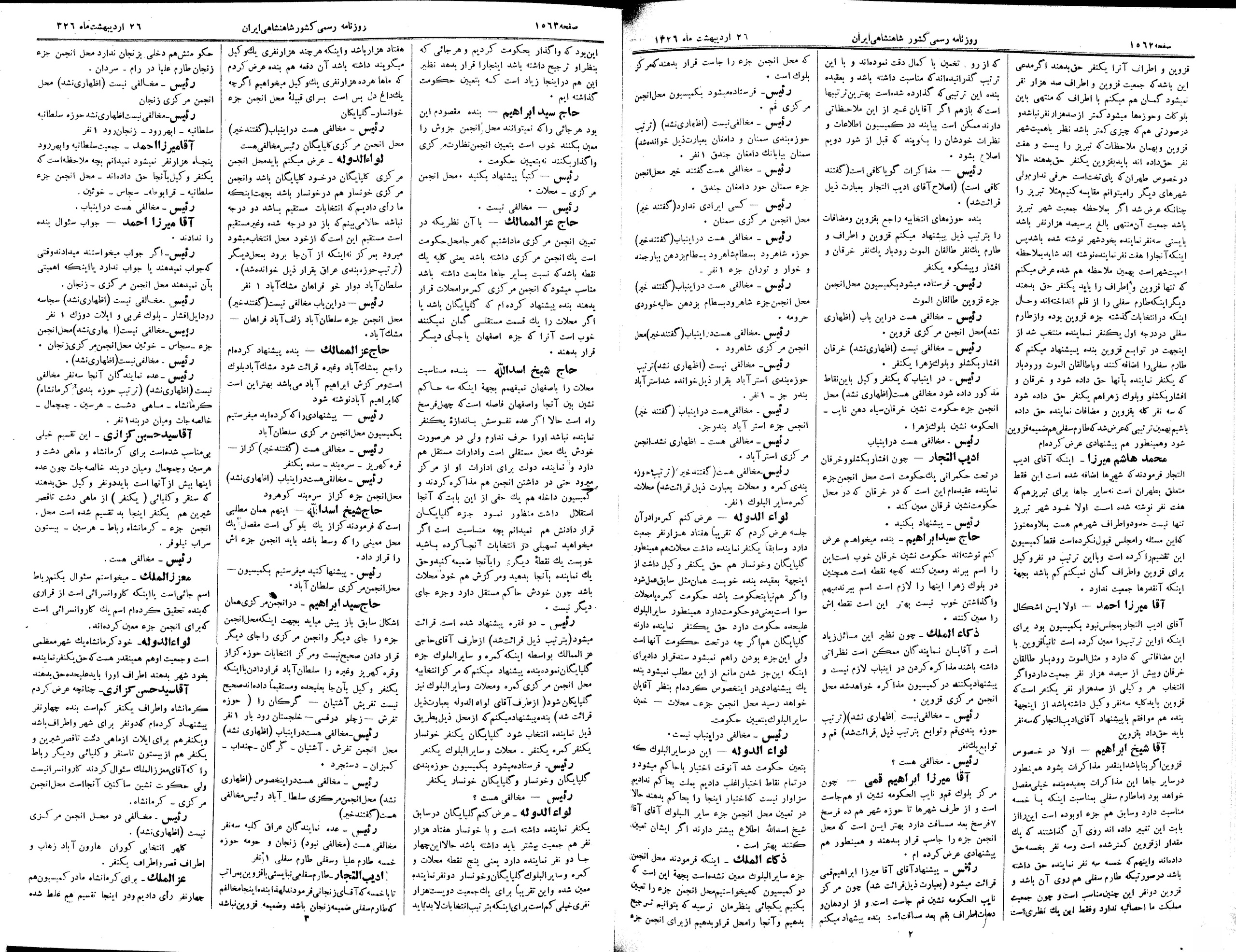 | کنونی | ۲۲ آوریل ۲۰۱۳، ساعت ۲۰:۴۹ | ۵٬۶۲۵×۸٬۸۰۰، ۵ صفحه (۱۴٫۴۹ مگابایت) | Bijan (گفتگو | مشارکتها) | {{PD-Iran}} رده:مجلس شورای ملی مذاکرات دوره قانونگذاری دوم - ۲۴ آبان ۱۲۸۸ تا ۲۳ دی ۱۲۹۰ |