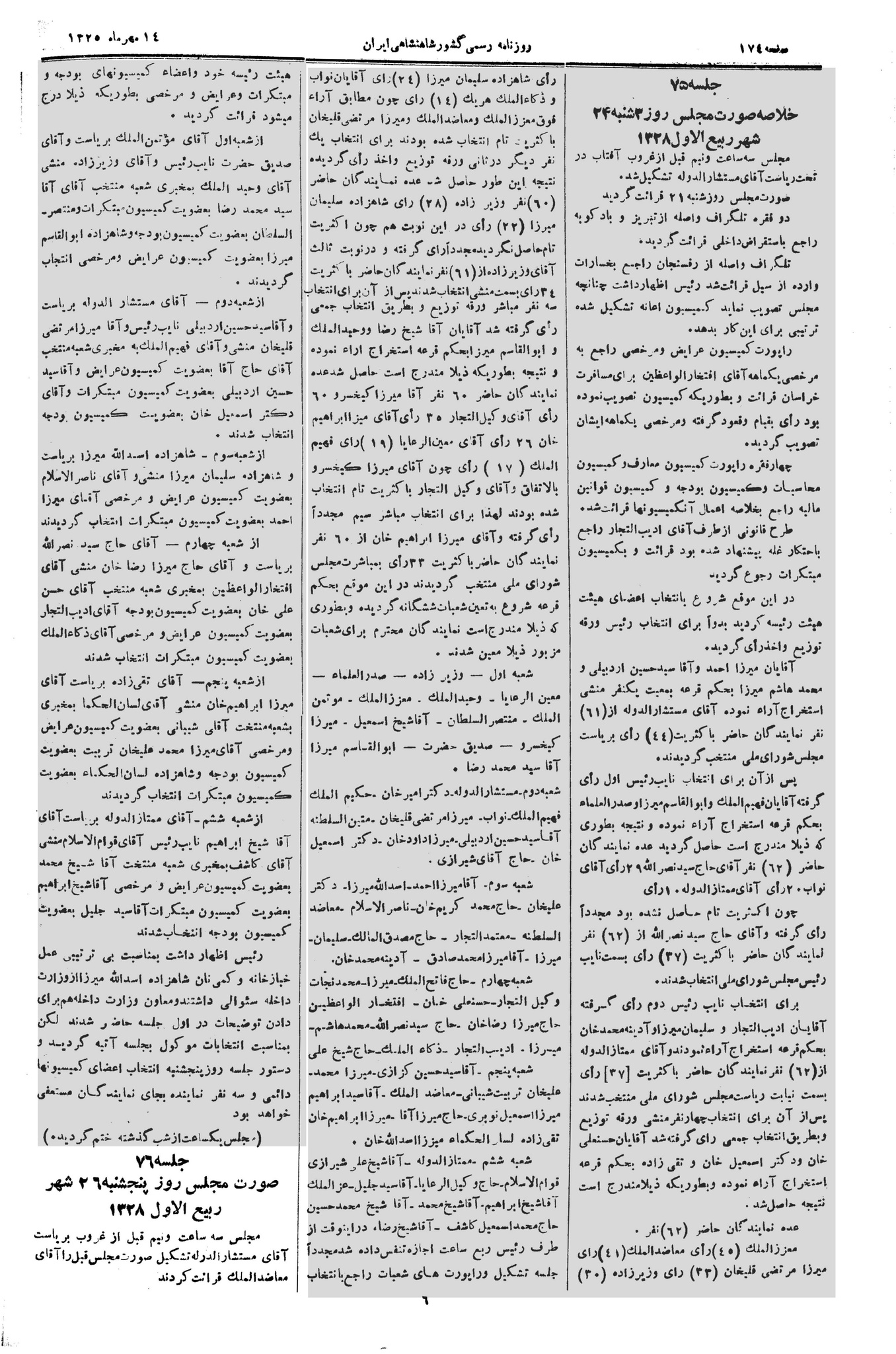 | کنونی | ۱۵ آوریل ۲۰۱۳، ساعت ۰۸:۳۳ | ۵٬۹۲۵×۸٬۹۴۷، ۴ صفحه (۶٫۴۷ مگابایت) | Bijan (گفتگو | مشارکتها) | {{PD-Iran}} رده:مجلس شورای ملی مذاکرات دوره قانونگذاری دوم - ۲۴ آبان ۱۲۸۸ تا ۲۳ دی ۱۲۹۰ |
