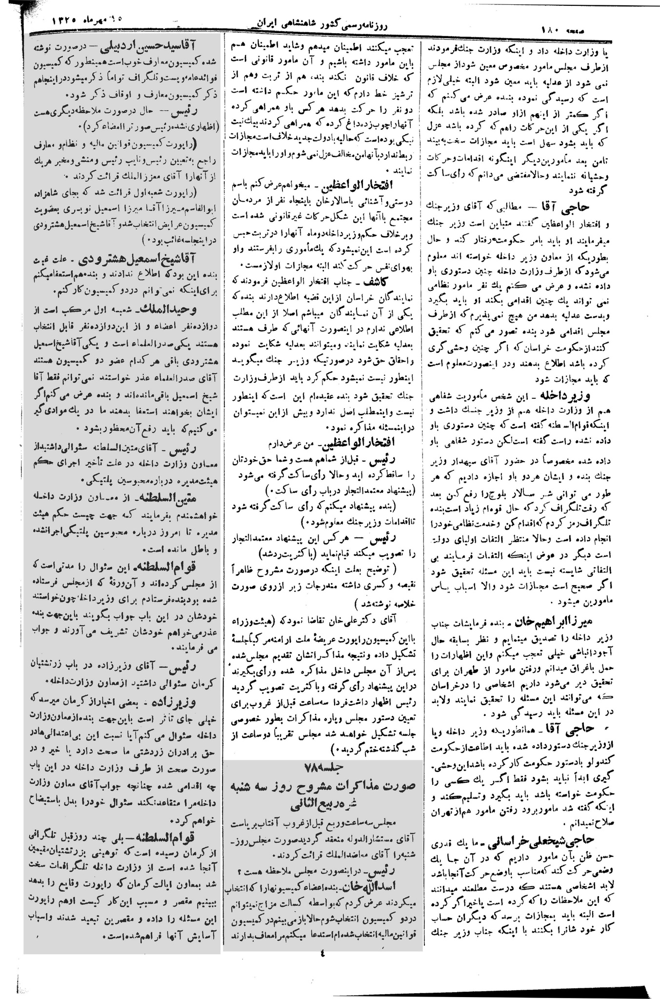 | کنونی | ۱۵ آوریل ۲۰۱۳، ساعت ۰۸:۳۷ | ۵٬۸۵۰×۸٬۸۳۳، ۳ صفحه (۶٫۳۵ مگابایت) | Bijan (گفتگو | مشارکتها) | {{PD-Iran}} رده:مجلس شورای ملی مذاکرات دوره قانونگذاری دوم - ۲۴ آبان ۱۲۸۸ تا ۲۳ دی ۱۲۹۰ |
