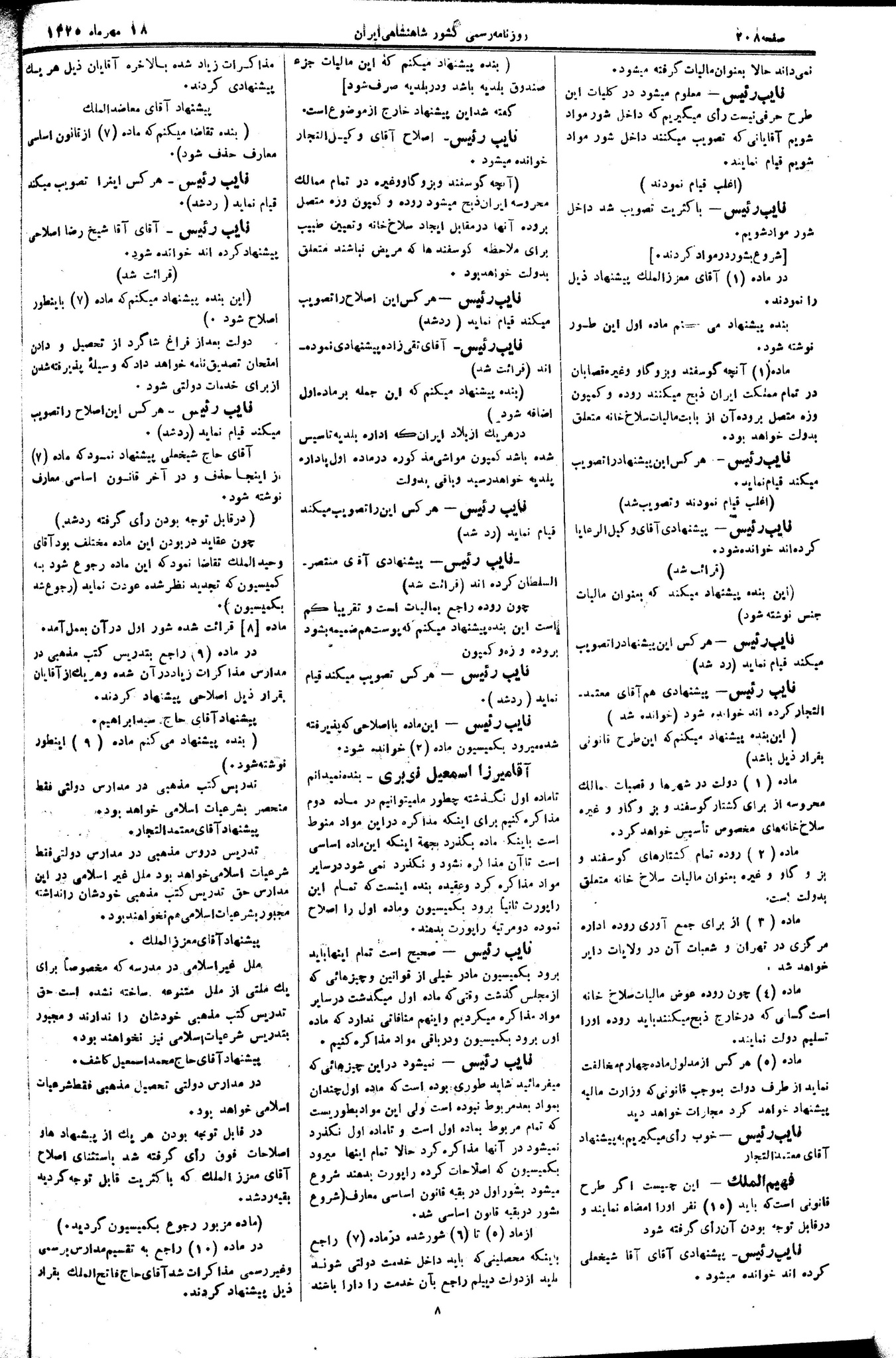 | کنونی | ۱۵ آوریل ۲۰۱۳، ساعت ۱۱:۳۰ | ۵٬۷۴۷×۸٬۸۷۹، ۳ صفحه (۴٫۸ مگابایت) | Bijan (گفتگو | مشارکتها) | {{PD-Iran}} رده:مجلس شورای ملی مذاکرات دوره قانونگذاری دوم - ۲۴ آبان ۱۲۸۸ تا ۲۳ دی ۱۲۹۰ |