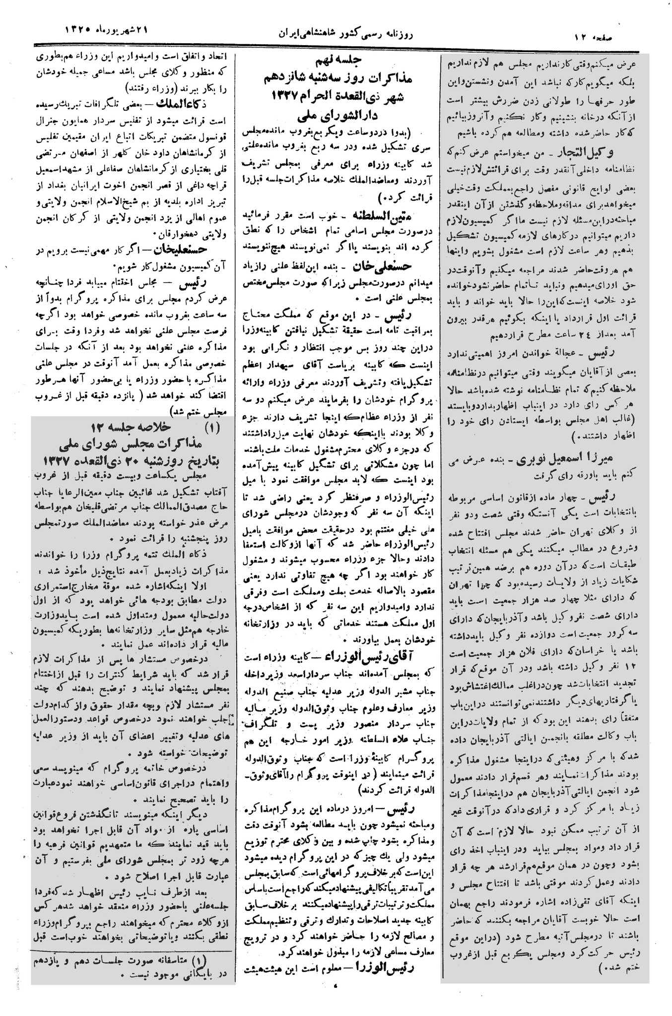 | کنونی | ۱۳ آوریل ۲۰۱۳، ساعت ۲۰:۲۸ | ۵٬۹۵۰ در ۹٬۰۰۰ (۱٫۹ مگابایت) | Bijan (گفتگو | مشارکتها) | {{PD-Iran}} رده:مجلس شورای ملی مذاکرات دوره قانونگذاری دوم - ۲۴ آبان ۱۲۸۸ تا ۲۳ دی ۱۲۹۰ |
