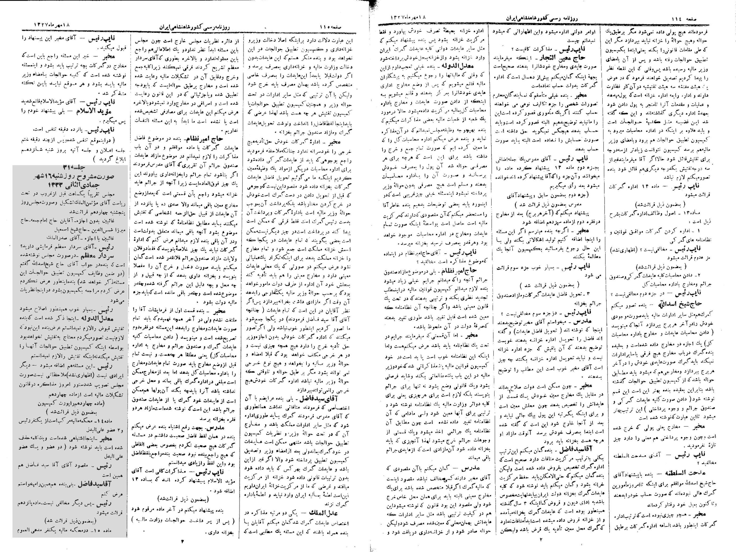 | کنونی | ۱۵ مهٔ ۲۰۱۳، ساعت ۲۲:۰۳ | ۱٬۴۰۶×۲٬۰۷۵، ۳ صفحه (۷٫۱۷ مگابایت) | Bijan (گفتگو | مشارکتها) | {{PD-Iran}} رده:مجلس شورای ملی مذاکرات دوره قانونگذاری سوم - ۱۴ آذر ۱۲۹۳ تا ۱۱ آبان ۱۲۹۴ |