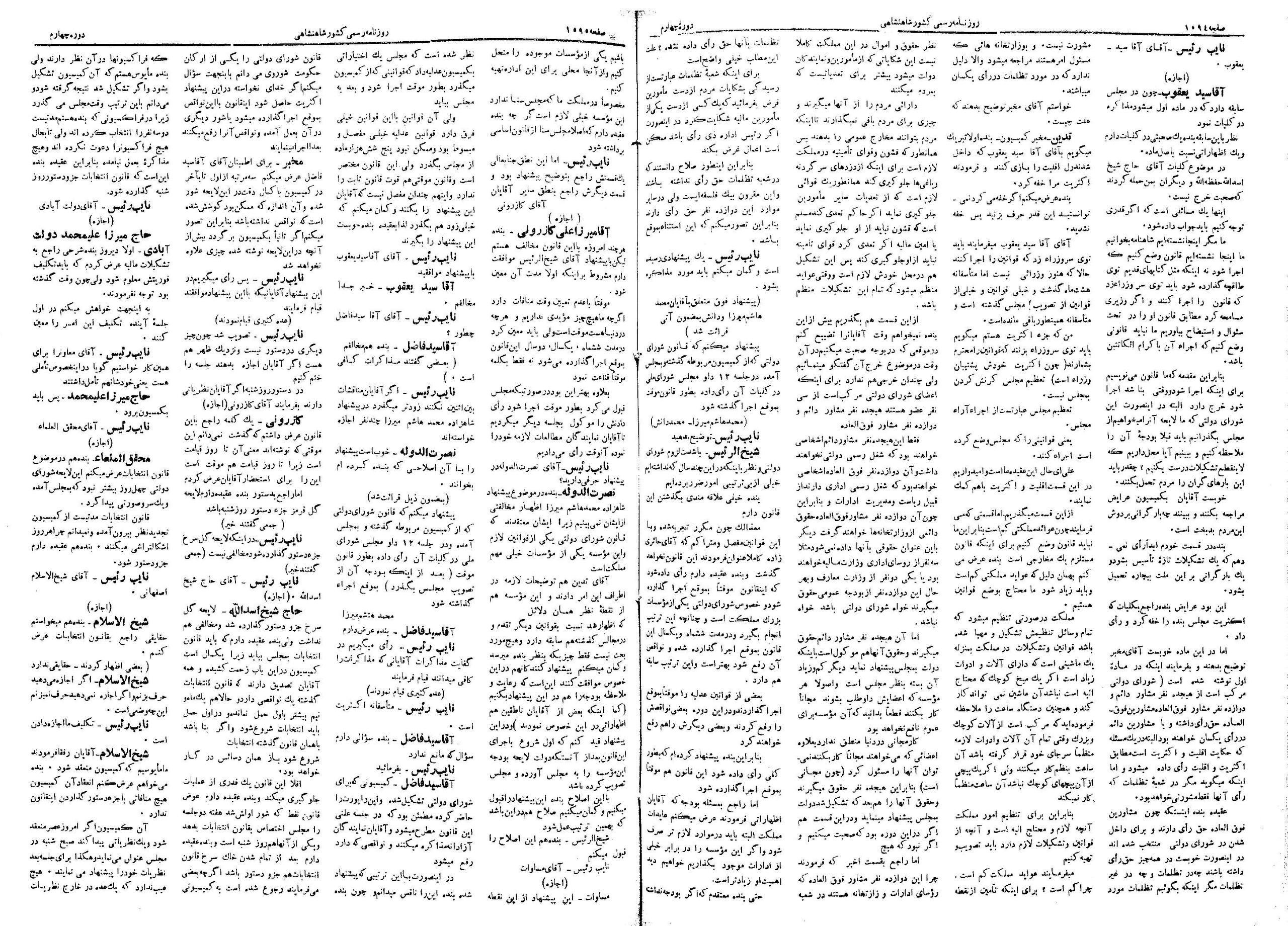 | کنونی | ۲۷ مهٔ ۲۰۱۳، ساعت ۱۳:۵۴ | ۱٬۴۳۹×۲٬۰۶۲، ۴ صفحه (۱۲٫۱۲ مگابایت) | Bijan (گفتگو | مشارکتها) | {{PD-Iran}} رده:مجلس شورای ملی مذاکرات دوره قانونگذاری چهارم - ۱ تیر ۱۳۰۰ تا ۳۰ خرداد ۱۳۰۲ |
