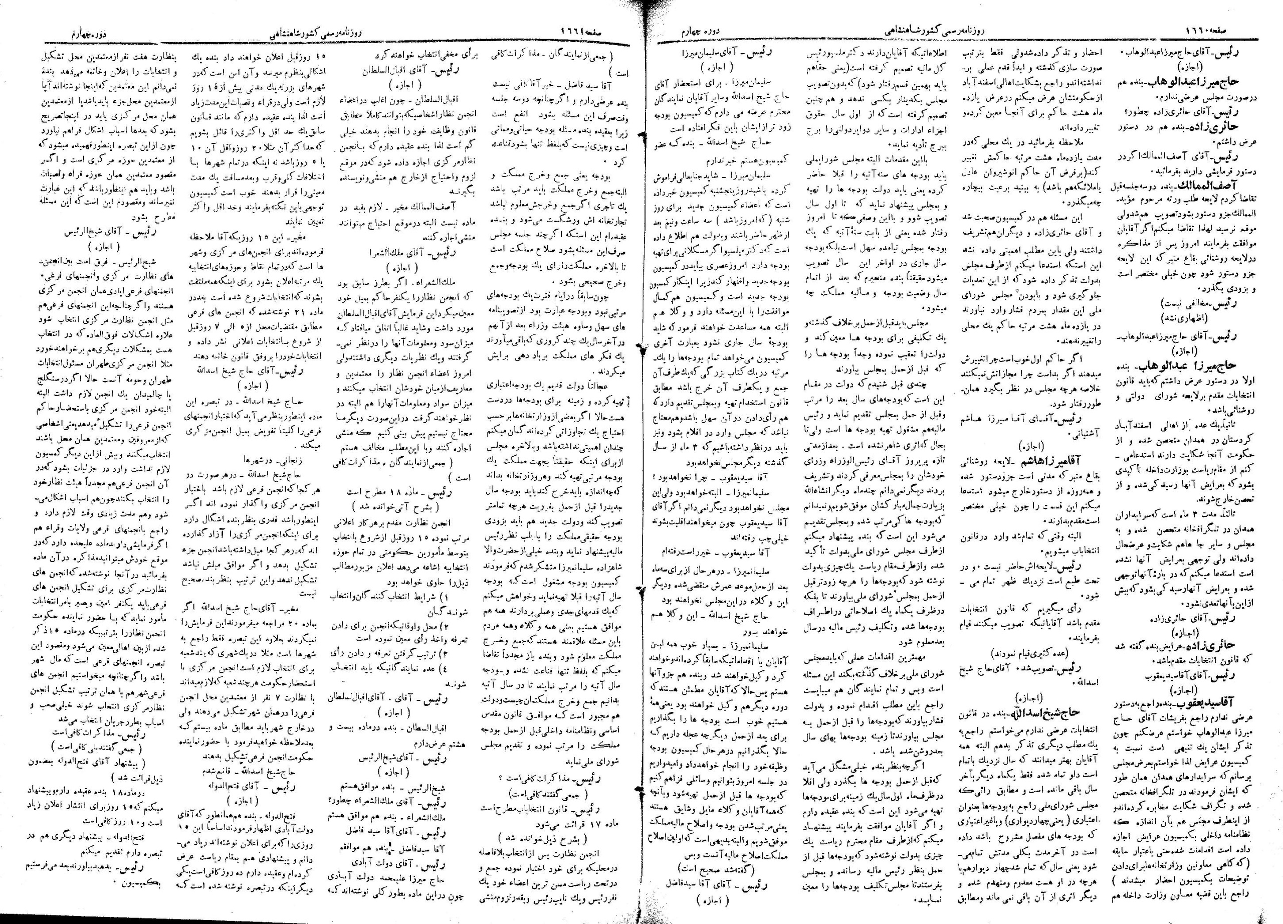 | کنونی | ۲۷ مهٔ ۲۰۱۳، ساعت ۱۶:۵۳ | ۱٬۴۳۹×۲٬۱۱۸، ۵ صفحه (۱۳٫۹۶ مگابایت) | Bijan (گفتگو | مشارکتها) | {{PD-Iran}} رده:مجلس شورای ملی مذاکرات دوره قانونگذاری چهارم - ۱ تیر ۱۳۰۰ تا ۳۰ خرداد ۱۳۰۲ |