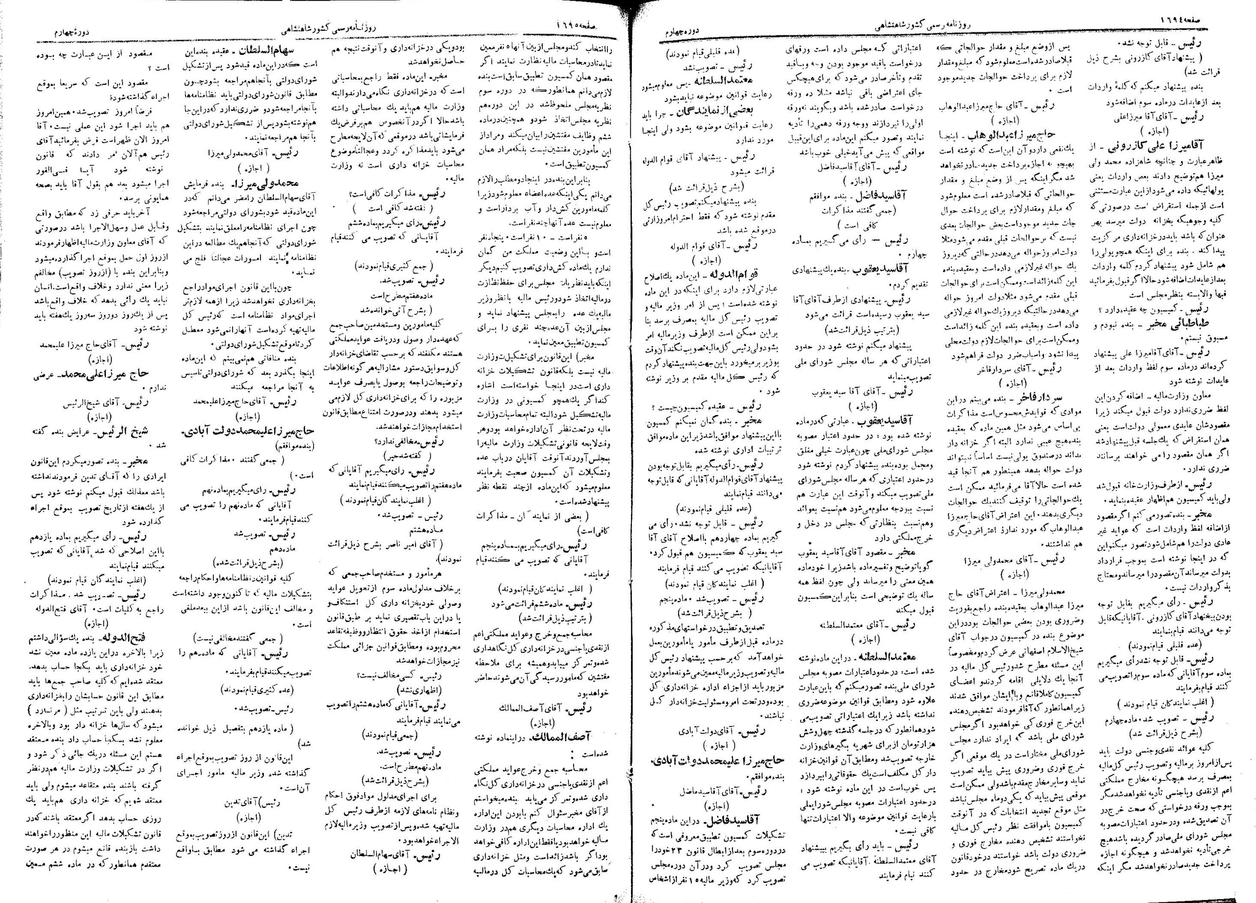 | کنونی | ۲۷ مهٔ ۲۰۱۳، ساعت ۱۷:۴۸ | ۱٬۴۸۳×۲٬۱۱۲، ۴ صفحه (۷٫۵ مگابایت) | Bijan (گفتگو | مشارکتها) | {{PD-Iran}} رده:مجلس شورای ملی مذاکرات دوره قانونگذاری چهارم - ۱ تیر ۱۳۰۰ تا ۳۰ خرداد ۱۳۰۲ |