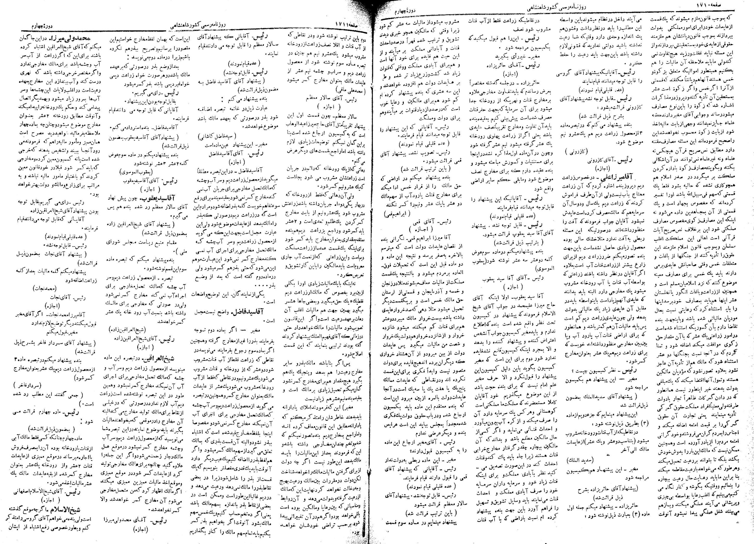 | کنونی | ۲۷ مهٔ ۲۰۱۳، ساعت ۱۸:۴۸ | ۱٬۴۶۸×۲٬۰۹۵، ۶ صفحه (۱۷٫۱۶ مگابایت) | Bijan (گفتگو | مشارکتها) | {{PD-Iran}} رده:مجلس شورای ملی مذاکرات دوره قانونگذاری چهارم - ۱ تیر ۱۳۰۰ تا ۳۰ خرداد ۱۳۰۲ |