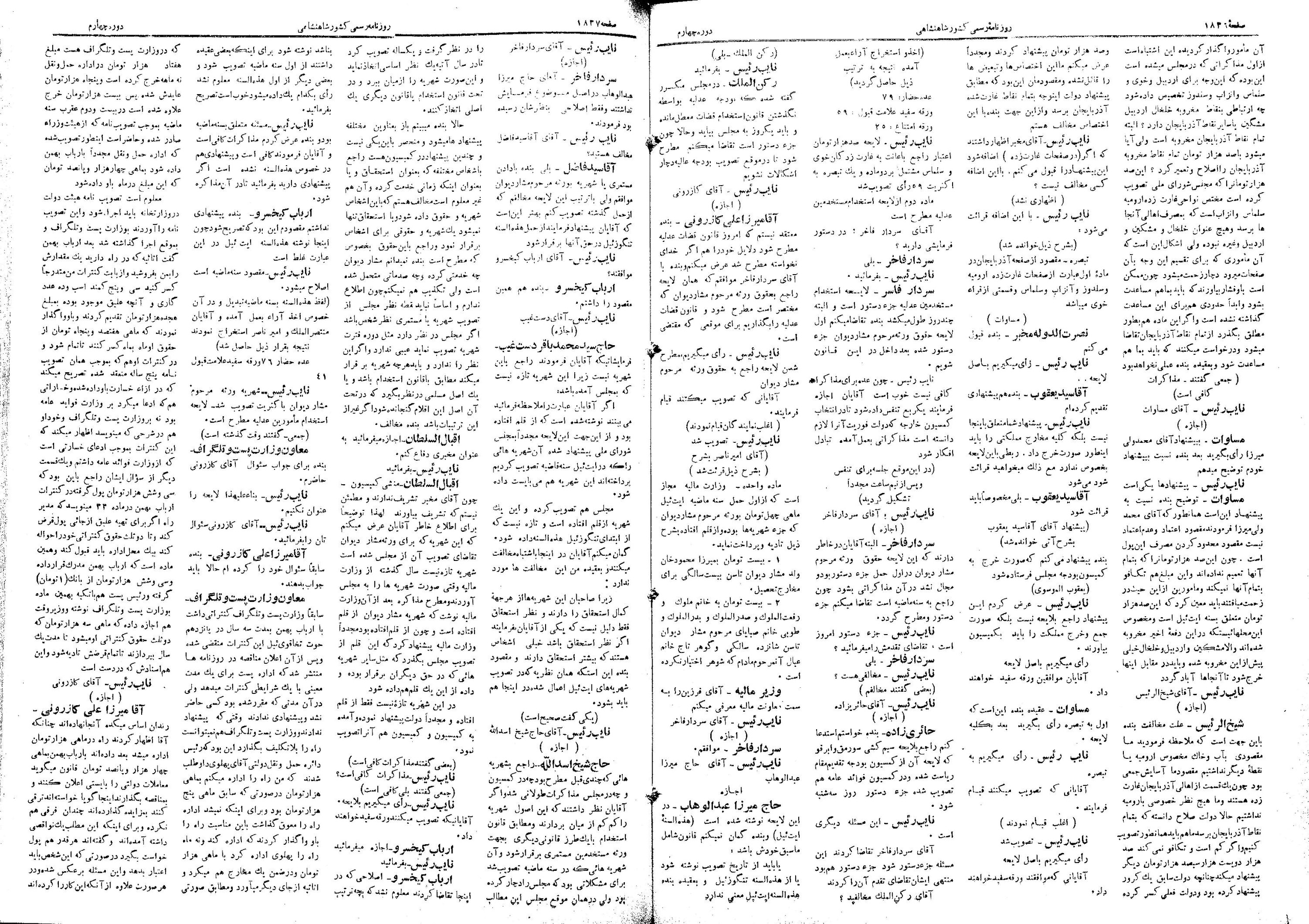 | کنونی | ۲۸ مهٔ ۲۰۱۳، ساعت ۰۶:۳۲ | ۱٬۴۷۹×۲٬۱۲۲، ۴ صفحه (۱۰٫۵۲ مگابایت) | Bijan (گفتگو | مشارکتها) | {{PD-Iran}} رده:مجلس شورای ملی مذاکرات دوره قانونگذاری چهارم - ۱ تیر ۱۳۰۰ تا ۳۰ خرداد ۱۳۰۲ |