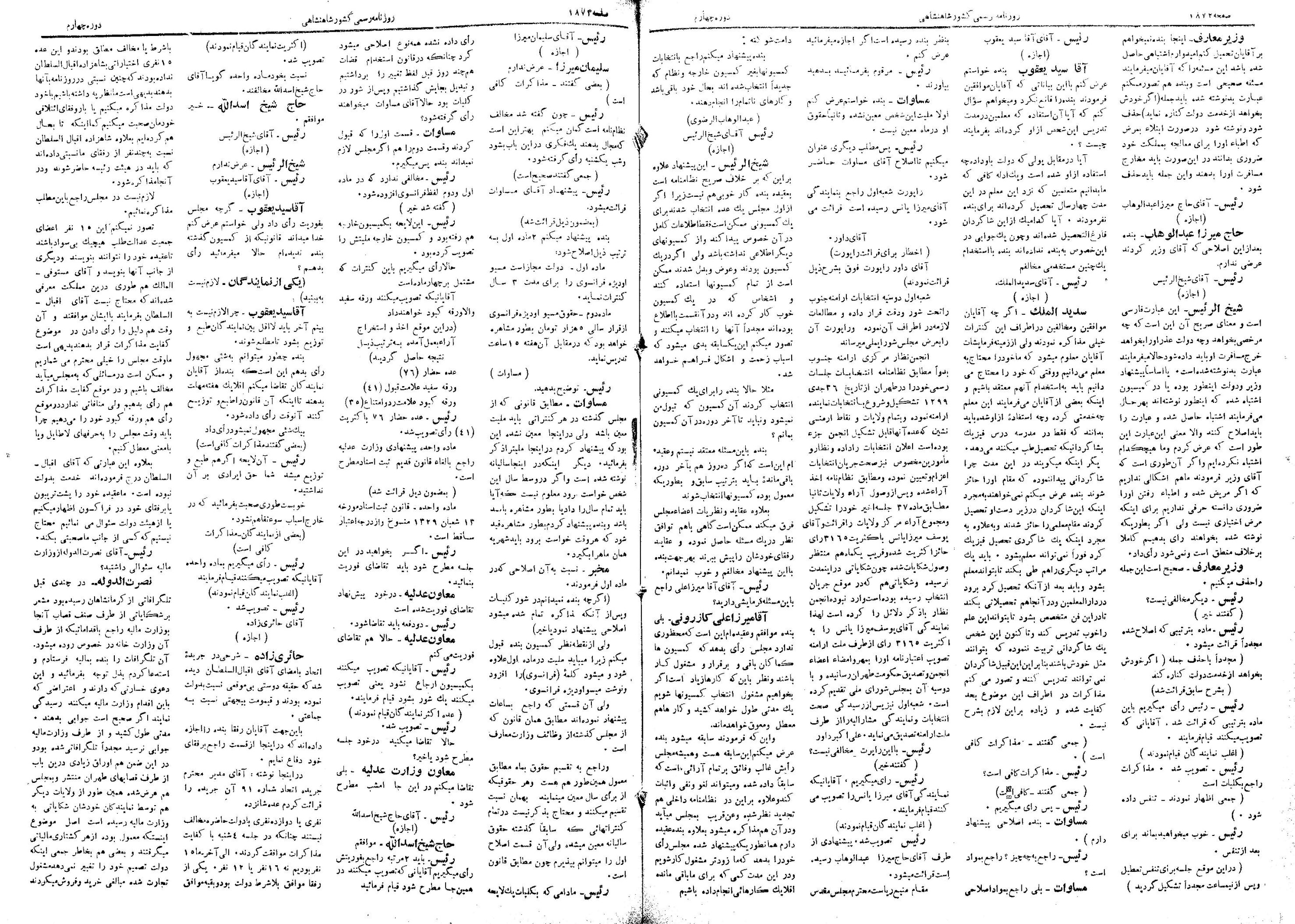 | کنونی | ۲۸ مهٔ ۲۰۱۳، ساعت ۰۸:۳۲ | ۱٬۴۸۵×۲٬۰۹۱، ۵ صفحه (۱۳٫۸۱ مگابایت) | Bijan (گفتگو | مشارکتها) | {{PD-Iran}} رده:مجلس شورای ملی مذاکرات دوره قانونگذاری چهارم - ۱ تیر ۱۳۰۰ تا ۳۰ خرداد ۱۳۰۲ |