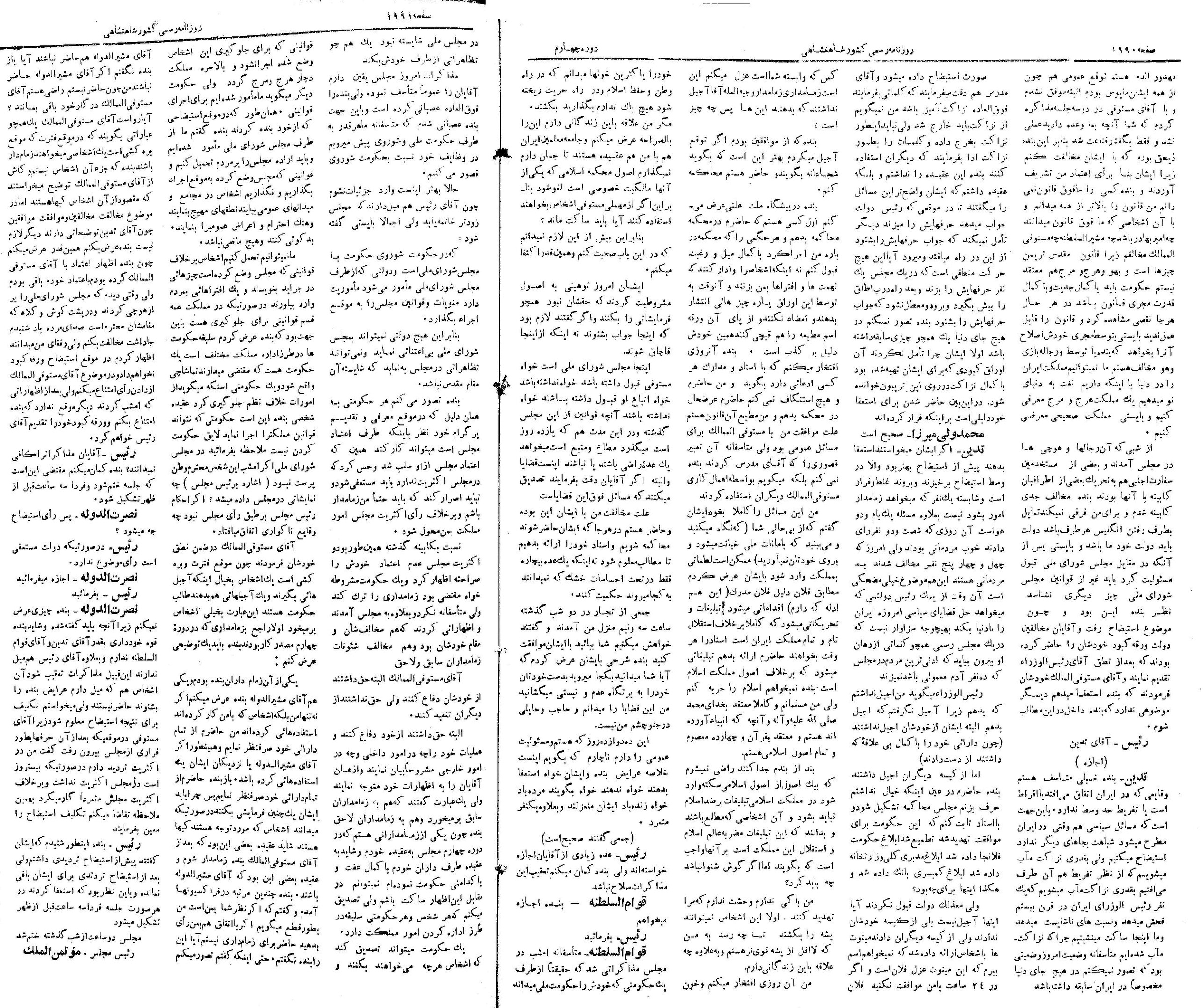 | کنونی | ۲۸ مهٔ ۲۰۱۳، ساعت ۱۳:۴۰ | ۱٬۴۸۷×۲٬۱۵۴، ۶ صفحه (۱۹٫۲۹ مگابایت) | Bijan (گفتگو | مشارکتها) | {{PD-Iran}} رده:مجلس شورای ملی مذاکرات دوره قانونگذاری چهارم - ۱ تیر ۱۳۰۰ تا ۳۰ خرداد ۱۳۰۲ |