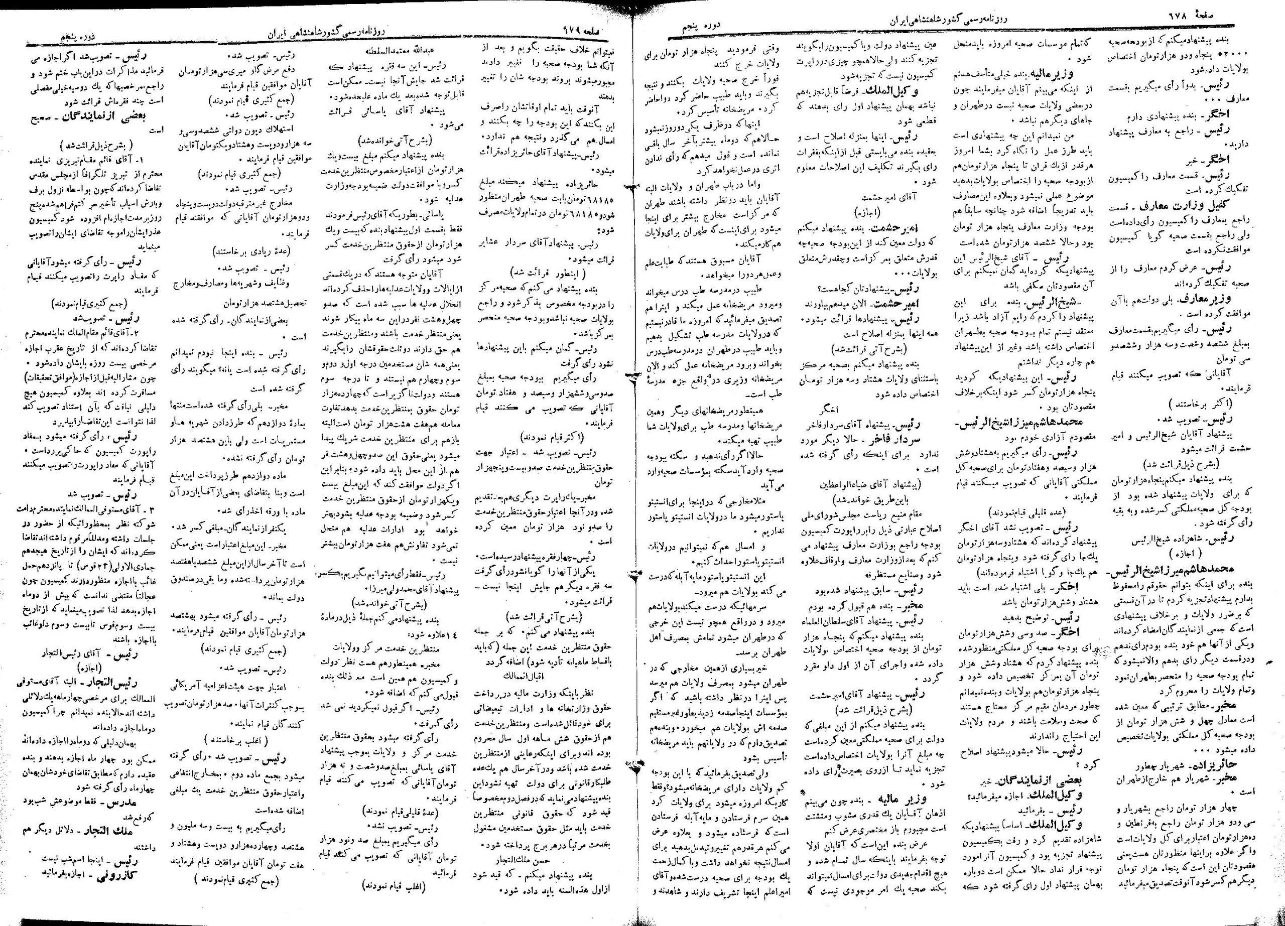 | ۲۲ ژوئن ۲۰۱۳، ساعت ۰۷:۱۷ | ۱٬۴۵۸×۲٬۰۵۶، ۵ صفحه (۱۱٫۵۸ مگابایت) | Bijan (گفتگو | مشارکتها) | {{PD-Iran}} رده:مجلس شورای ملی مذاکرات دوره قانونگذاری پنجم - ۲۲ بهمن ۱۳۰۲ تا ۲۱ بهمن ۱۳۰۴ |