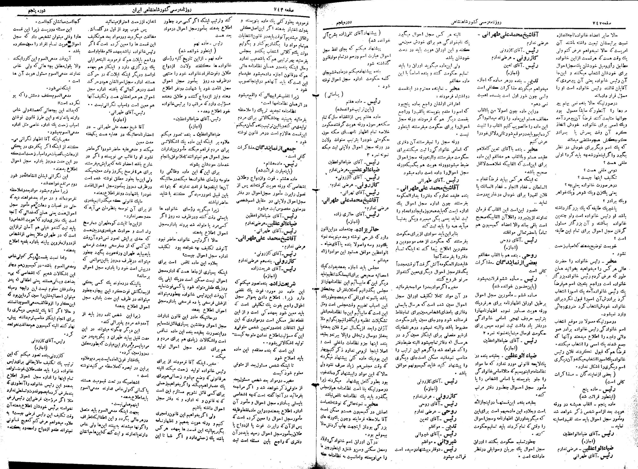 | ۲۴ ژوئن ۲۰۱۳، ساعت ۰۹:۲۵ | ۱٬۴۳۹×۲٬۱۱۲، ۵ صفحه (۱۶٫۱۱ مگابایت) | Bijan (گفتگو | مشارکتها) | {{PD-Iran}} رده:مجلس شورای ملی مذاکرات دوره قانونگذاری پنجم - ۲۲ بهمن ۱۳۰۲ تا ۲۱ بهمن ۱۳۰۴ |