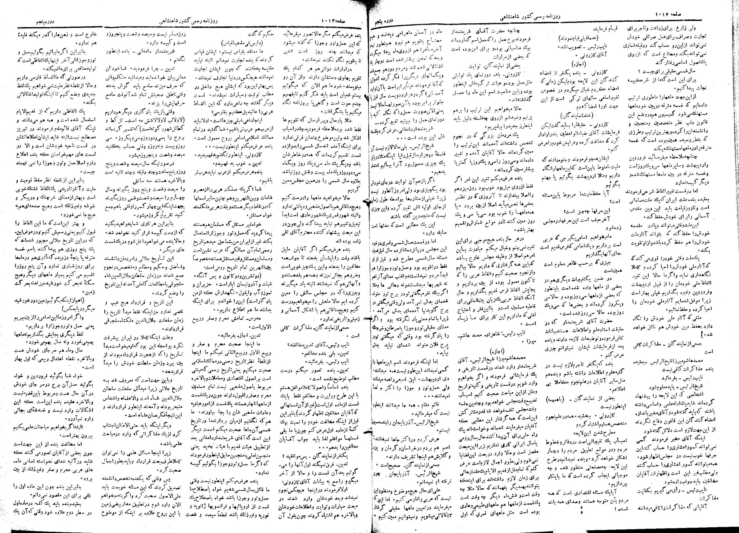 | کنونی | ۲۶ ژوئن ۲۰۱۳، ساعت ۱۷:۱۳ | ۱٬۴۵۰×۲٬۱۰۰، ۴ صفحه (۱۰٫۸۳ مگابایت) | Bijan (گفتگو | مشارکتها) | {{PD-Iran}} رده:مجلس شورای ملی مذاکرات دوره قانونگذاری پنجم - ۲۲ بهمن ۱۳۰۲ تا ۲۱ بهمن ۱۳۰۴ |