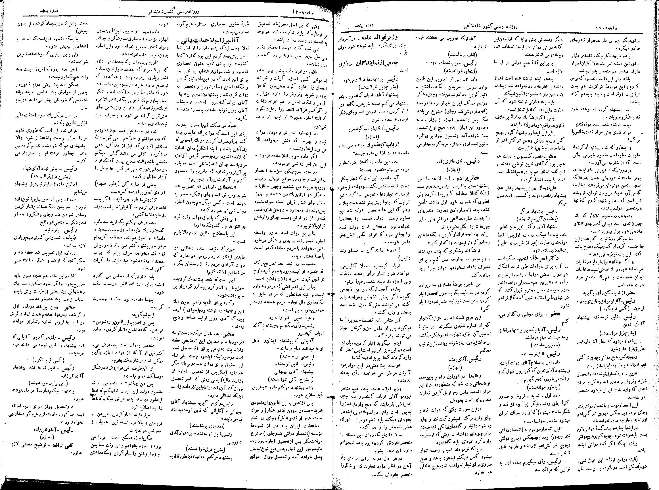 | کنونی | ۲۶ ژوئن ۲۰۱۳، ساعت ۰۹:۱۷ | ۱٬۵۰۸×۲٬۱۴۳، ۸ صفحه (۲۴٫۳۳ مگابایت) | Bijan (گفتگو | مشارکتها) | {{PD-Iran}} رده:مجلس شورای ملی مذاکرات دوره قانونگذاری پنجم - ۲۲ بهمن ۱۳۰۲ تا ۲۱ بهمن ۱۳۰۴ |