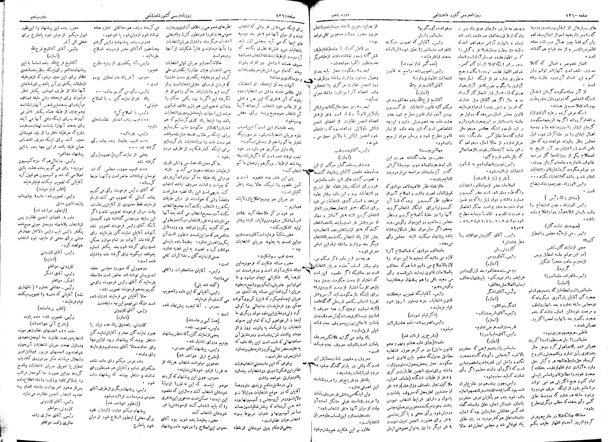| کنونی | ۲۵ ژوئن ۲۰۱۳، ساعت ۲۲:۳۷ | ۱٬۴۴۵×۲٬۰۶۲، ۵ صفحه (۱۴٫۴ مگابایت) | Bijan (گفتگو | مشارکتها) | {{PD-Iran}} رده:مجلس شورای ملی مذاکرات دوره قانونگذاری پنجم - ۲۲ بهمن ۱۳۰۲ تا ۲۱ بهمن ۱۳۰۴ |