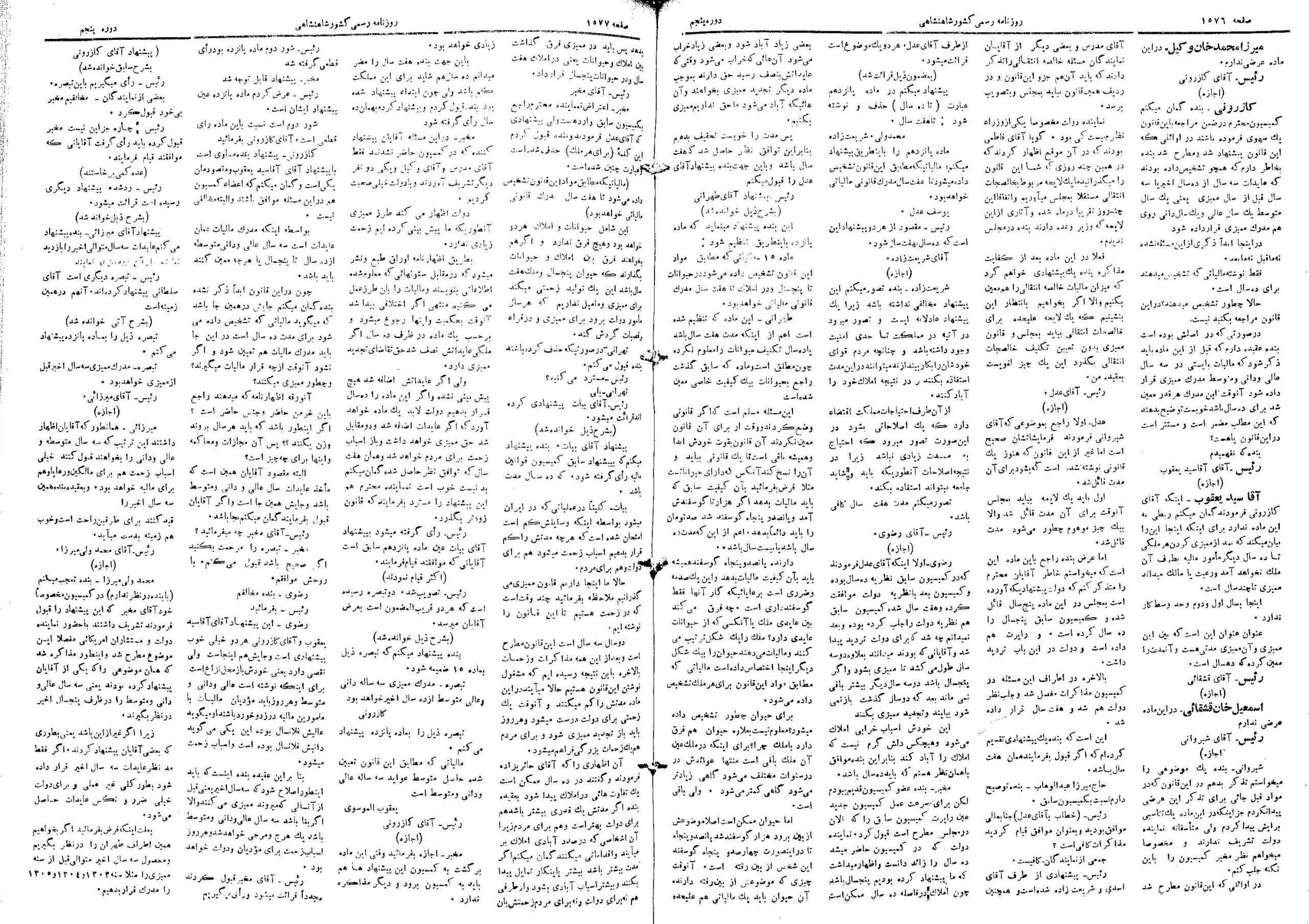 | کنونی | ۲۵ ژوئن ۲۰۱۳، ساعت ۰۸:۵۶ | ۱٬۵۰۴×۲٬۱۳۱، ۶ صفحه (۱۴٫۷۶ مگابایت) | Bijan (گفتگو | مشارکتها) | {{PD-Iran}} رده:مجلس شورای ملی مذاکرات دوره قانونگذاری پنجم - ۲۲ بهمن ۱۳۰۲ تا ۲۱ بهمن ۱۳۰۴ |