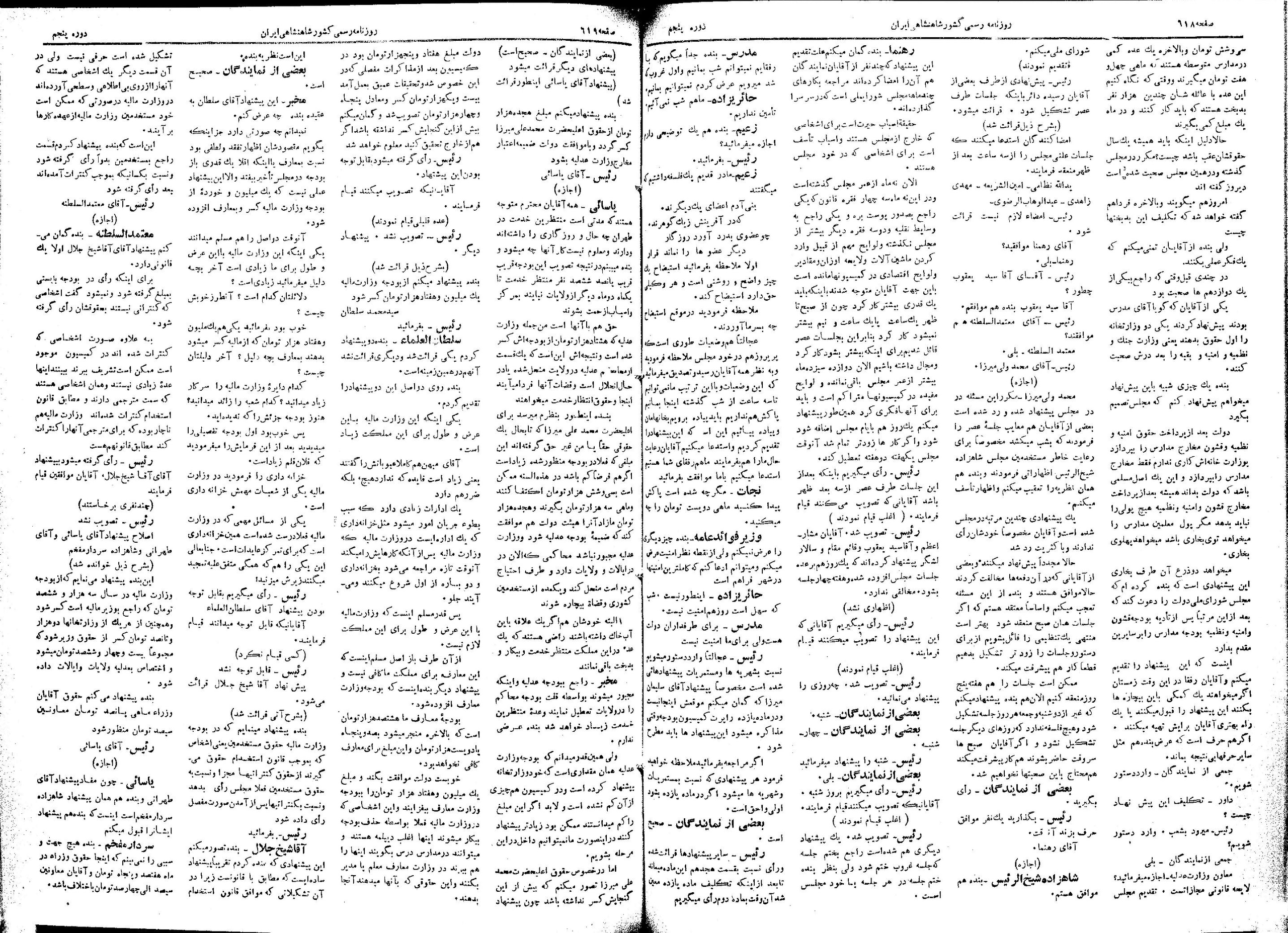 | کنونی | ۲۲ ژوئن ۲۰۱۳، ساعت ۰۶:۲۱ | ۱٬۴۲۵×۲٬۰۶۴، ۶ صفحه (۱۷٫۷۴ مگابایت) | Bijan (گفتگو | مشارکتها) | {{PD-Iran}} رده:مجلس شورای ملی مذاکرات دوره قانونگذاری پنجم - ۲۲ بهمن ۱۳۰۲ تا ۲۱ بهمن ۱۳۰۴ |