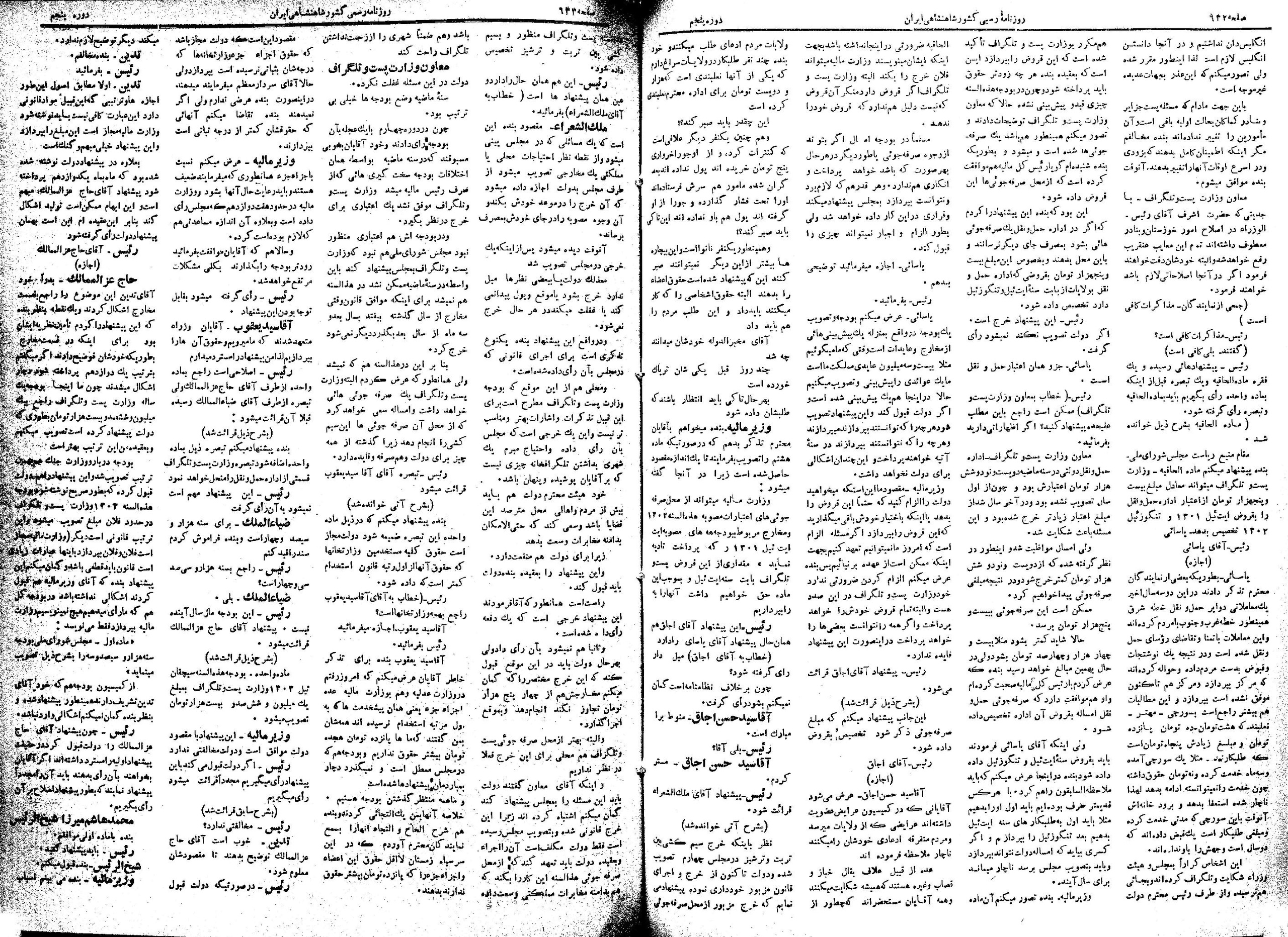 | کنونی | ۲۲ ژوئن ۲۰۱۳، ساعت ۰۶:۲۸ | ۱٬۴۲۰×۲٬۰۵۴، ۷ صفحه (۲۱٫۶۳ مگابایت) | Bijan (گفتگو | مشارکتها) | {{PD-Iran}} رده:مجلس شورای ملی مذاکرات دوره قانونگذاری پنجم - ۲۲ بهمن ۱۳۰۲ تا ۲۱ بهمن ۱۳۰۴ |