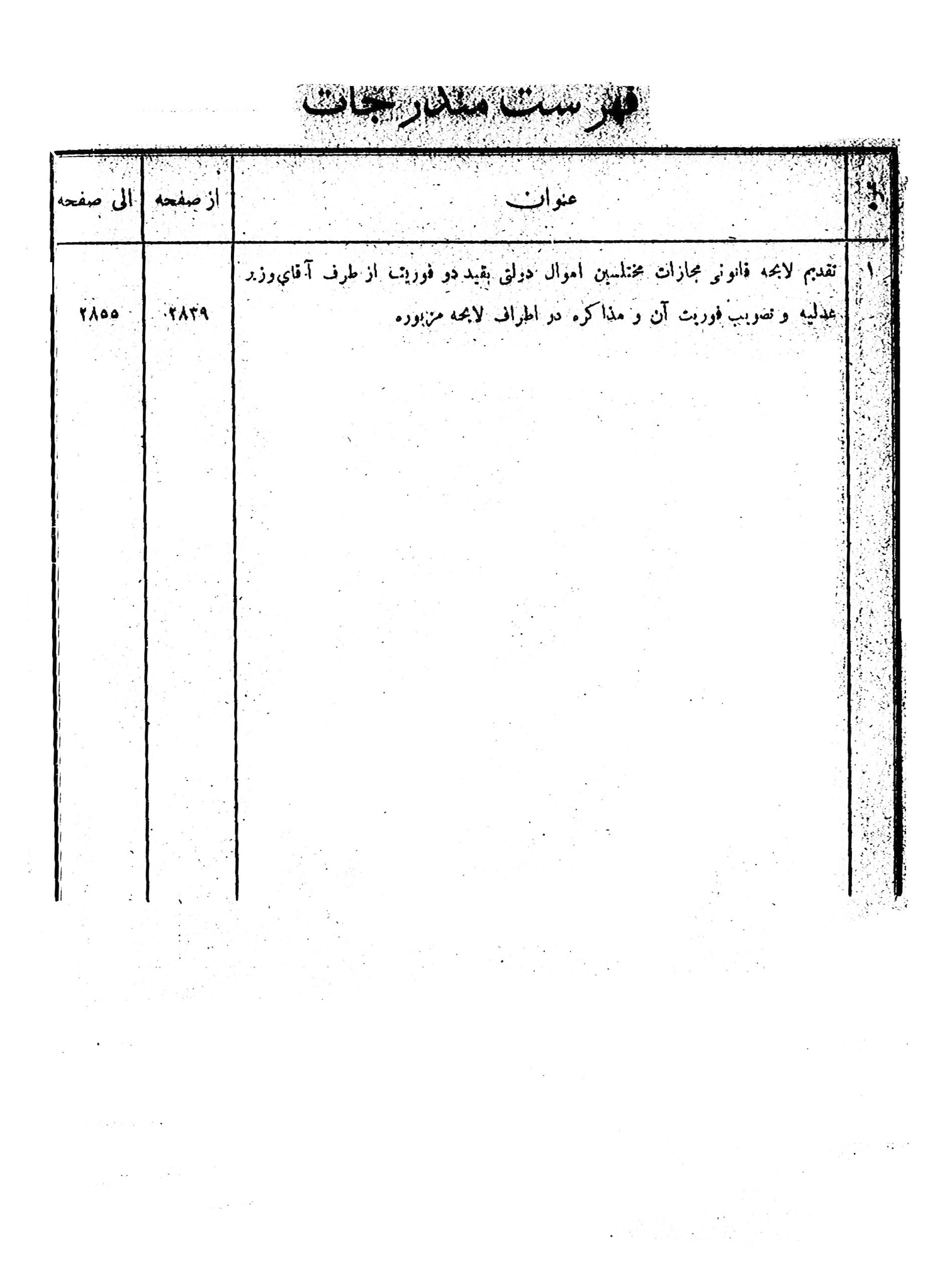 | کنونی | ۱۳ ژوئیهٔ ۲۰۱۳، ساعت ۰۷:۱۸ | ۴٬۰۱۸×۵٬۳۹۷، ۱۲ صفحه (۱۰٫۸۶ مگابایت) | Bijan (گفتگو | مشارکتها) | {{PD-Iran}} رده:مجلس شورای ملی مذاکرات دوره قانونگذاری ششم - ۱۹ تیر ۱۳۰۵ تا ۲۲ امرداد ۱۳۰۷ |