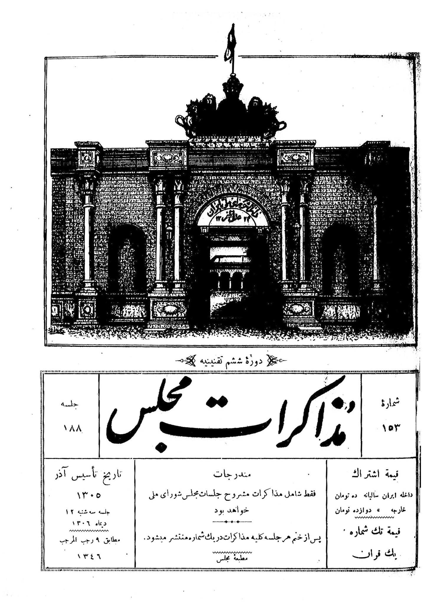 | کنونی | ۱۳ ژوئیهٔ ۲۰۱۳، ساعت ۱۱:۴۸ | ۳٬۸۷۵×۵٬۴۰۲، ۱۰ صفحه (۸٫۷۶ مگابایت) | Bijan (گفتگو | مشارکتها) | {{PD-Iran}} رده:مجلس شورای ملی مذاکرات دوره قانونگذاری ششم - ۱۹ تیر ۱۳۰۵ تا ۲۲ امرداد ۱۳۰۷ |