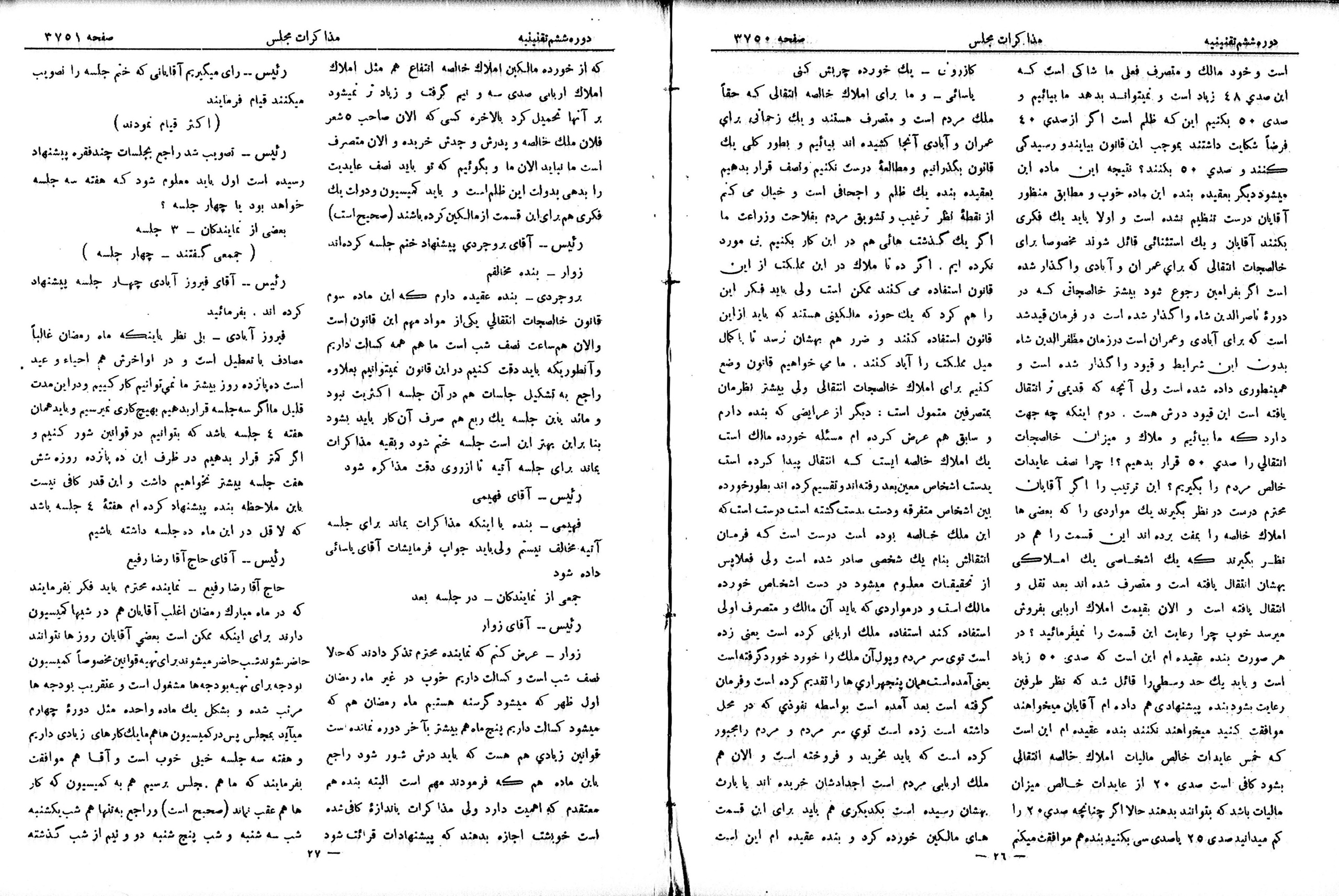 | کنونی | ۱۳ ژوئیهٔ ۲۰۱۳، ساعت ۱۹:۳۷ | ۴٬۱۶۸×۵٬۴۸۱، ۱۷ صفحه (۱۷٫۲۴ مگابایت) | Bijan (گفتگو | مشارکتها) | {{PD-Iran}} رده:مجلس شورای ملی مذاکرات دوره قانونگذاری ششم - ۱۹ تیر ۱۳۰۵ تا ۲۲ امرداد ۱۳۰۷ |