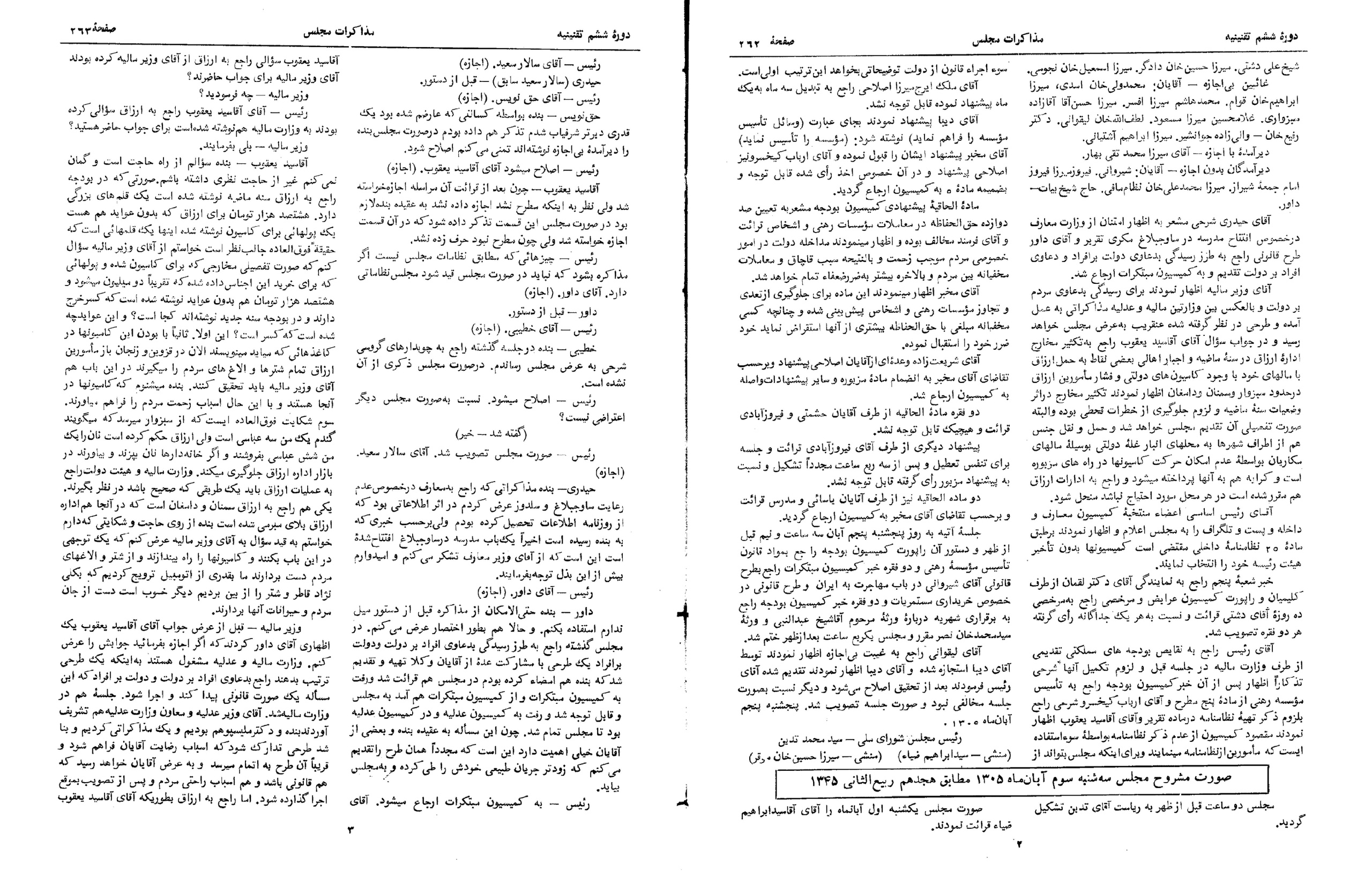 | کنونی | ۷ ژوئیهٔ ۲۰۱۳، ساعت ۱۰:۰۶ | ۳٬۰۳۵×۳٬۹۷۷، ۶ صفحه (۱٫۵۶ مگابایت) | Bijan (گفتگو | مشارکتها) | {{PD-Iran}} رده:مجلس شورای ملی مذاکرات دوره قانونگذاری ششم - ۱۹ تیر ۱۳۰۵ تا ۲۲ امرداد ۱۳۰۷ |
