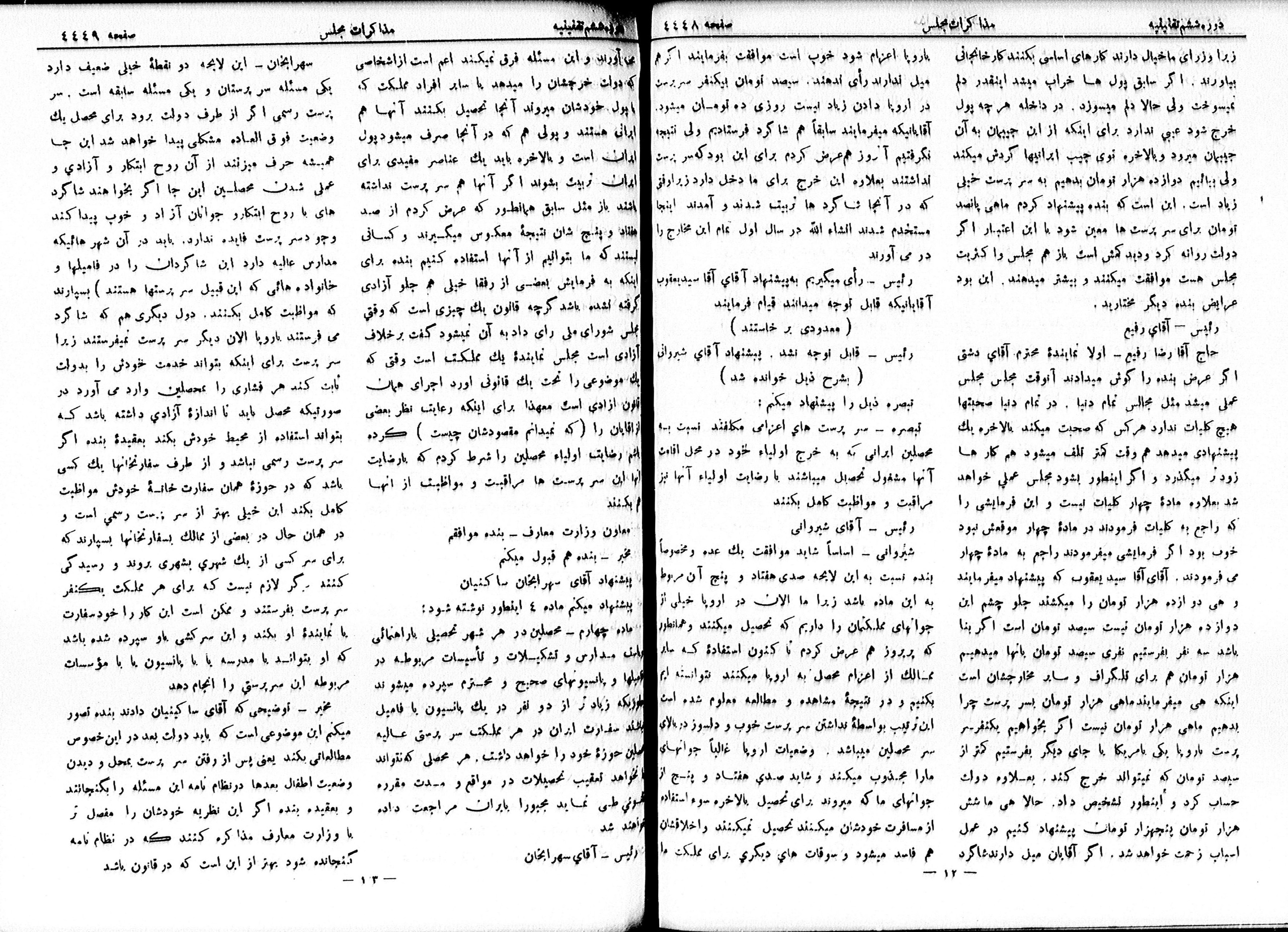 | کنونی | ۱۴ ژوئیهٔ ۲۰۱۳، ساعت ۱۷:۰۵ | ۳٬۸۱۴×۵٬۳۸۳، ۱۱ صفحه (۱۵٫۶۸ مگابایت) | Bijan (گفتگو | مشارکتها) | {{PD-Iran}} رده:مجلس شورای ملی مذاکرات دوره قانونگذاری ششم - ۱۹ تیر ۱۳۰۵ تا ۲۲ امرداد ۱۳۰۷ |