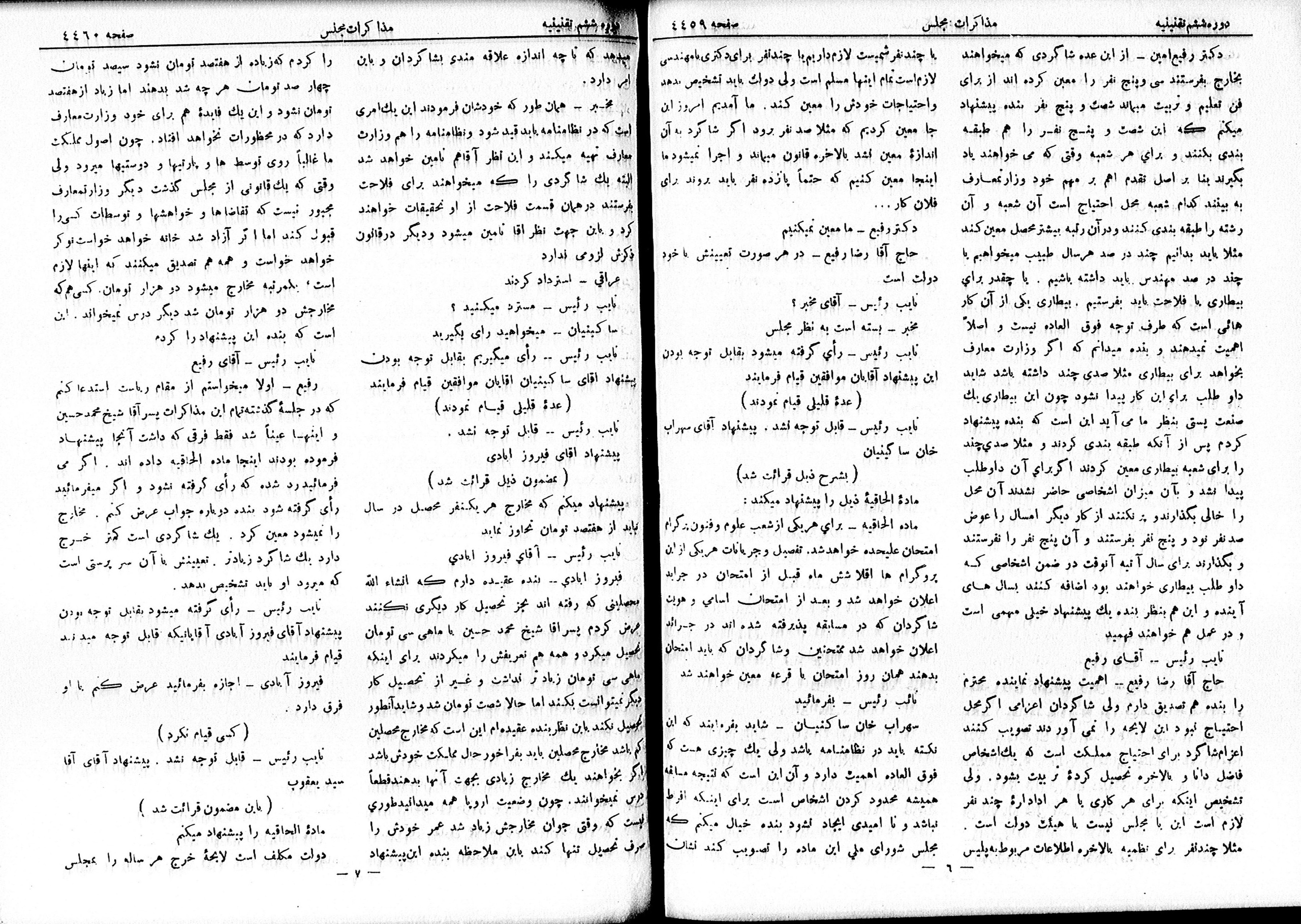 | کنونی | ۱۴ ژوئیهٔ ۲۰۱۳، ساعت ۱۸:۰۷ | ۳٬۸۶۸×۵٬۳۲۲، ۹ صفحه (۱۲٫۰۱ مگابایت) | Bijan (گفتگو | مشارکتها) | {{PD-Iran}} رده:مجلس شورای ملی مذاکرات دوره قانونگذاری ششم - ۱۹ تیر ۱۳۰۵ تا ۲۲ امرداد ۱۳۰۷ |