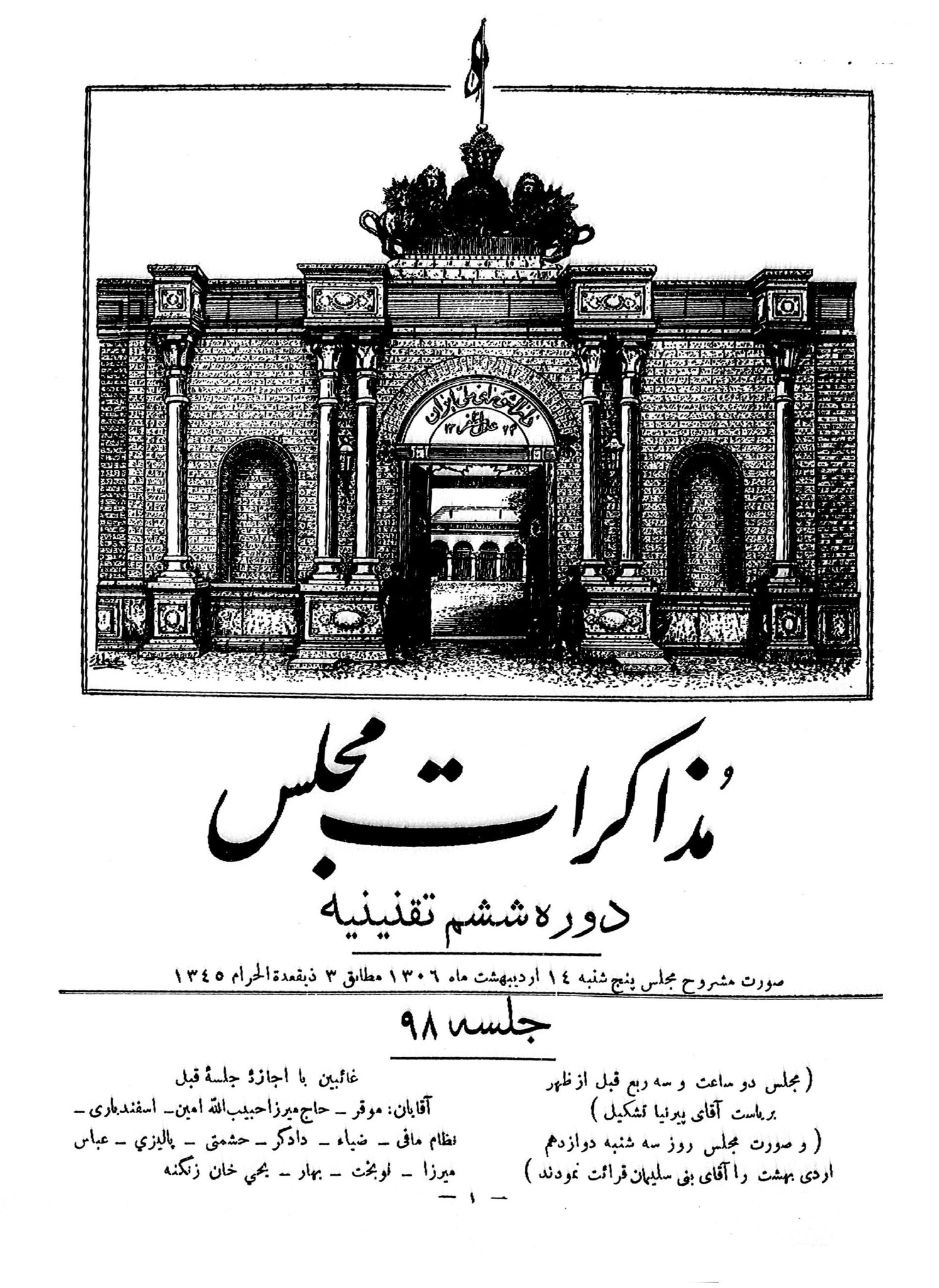| کنونی | ۱۰ ژوئیهٔ ۲۰۱۳، ساعت ۱۵:۲۷ | ۲٬۸۳۳×۳٬۹۴۷، ۱۵ صفحه (۱۲٫۷۳ مگابایت) | Bijan (گفتگو | مشارکتها) | {{PD-Iran}} رده:مجلس شورای ملی مذاکرات دوره قانونگذاری ششم - ۱۹ تیر ۱۳۰۵ تا ۲۲ امرداد ۱۳۰۷ |