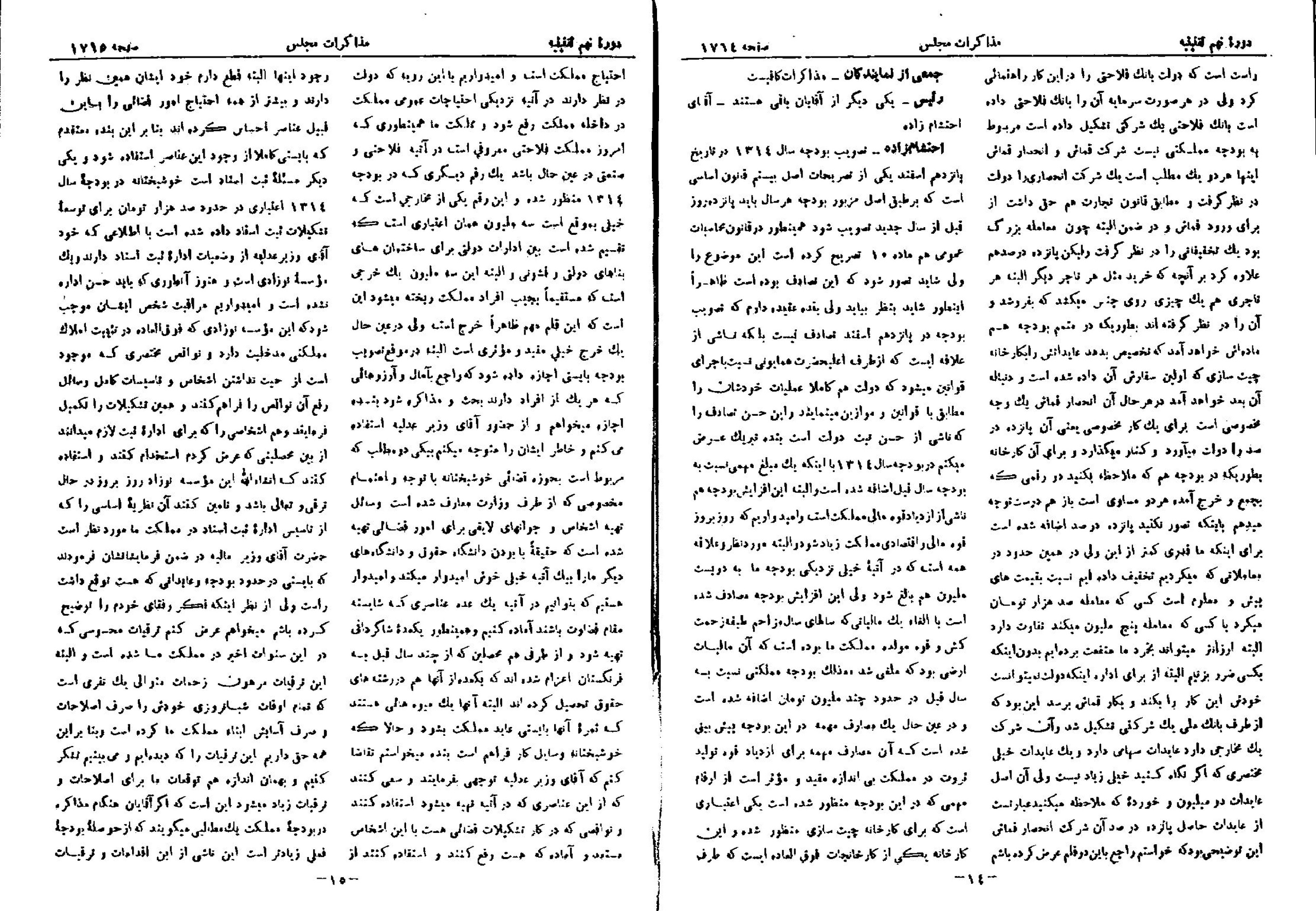 | کنونی | ۳ سپتامبر ۲۰۱۳، ساعت ۱۳:۳۴ | ۲٬۳۶۶×۳٬۱۸۳، ۱۷ صفحه (۸٫۶۳ مگابایت) | Bijan (گفتگو | مشارکتها) | {{PD-Iran}} رده:مجلس شورای ملی مذاکرات دوره قانونگذاری نهم - ۲۴ اسفند ۱۳۱۲ تا ۲۴ فروردین ۱۳۱۴ |