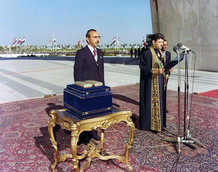 پرونده:NikpayWelcomingPresidentSadatShahyad2535Shahanshahi.jpg