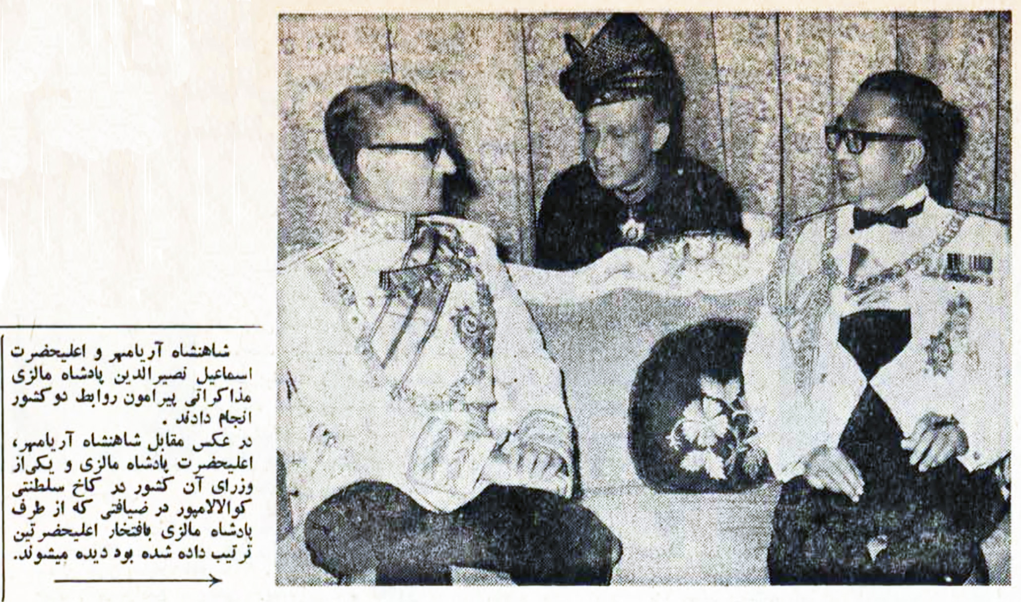 پرونده:ShahanshahAryamehrKingEsmailMalaysiaOfficialDinner27Dey1346.jpg