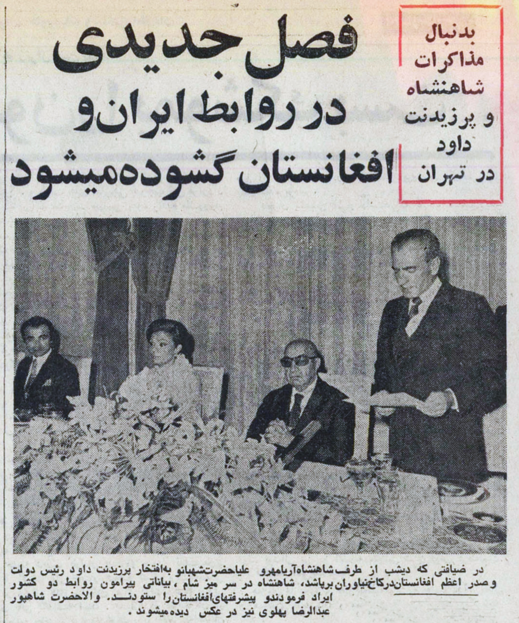 - دیدار رسمی محمد داود رییس دولت و صدراعظم جمهوری افغانستان از ایران ۱۰-۶ اردیبهشت ماه ۱۳۵۴ خورشیدی
