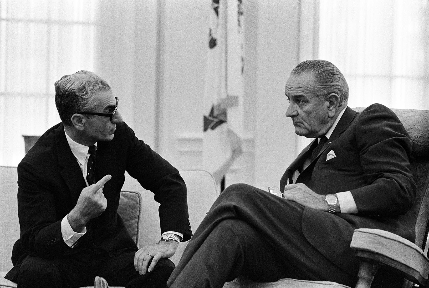 پرونده:ShahanshahAryamehrPresidentJohnsonOvalOfficeJune1968.jpg