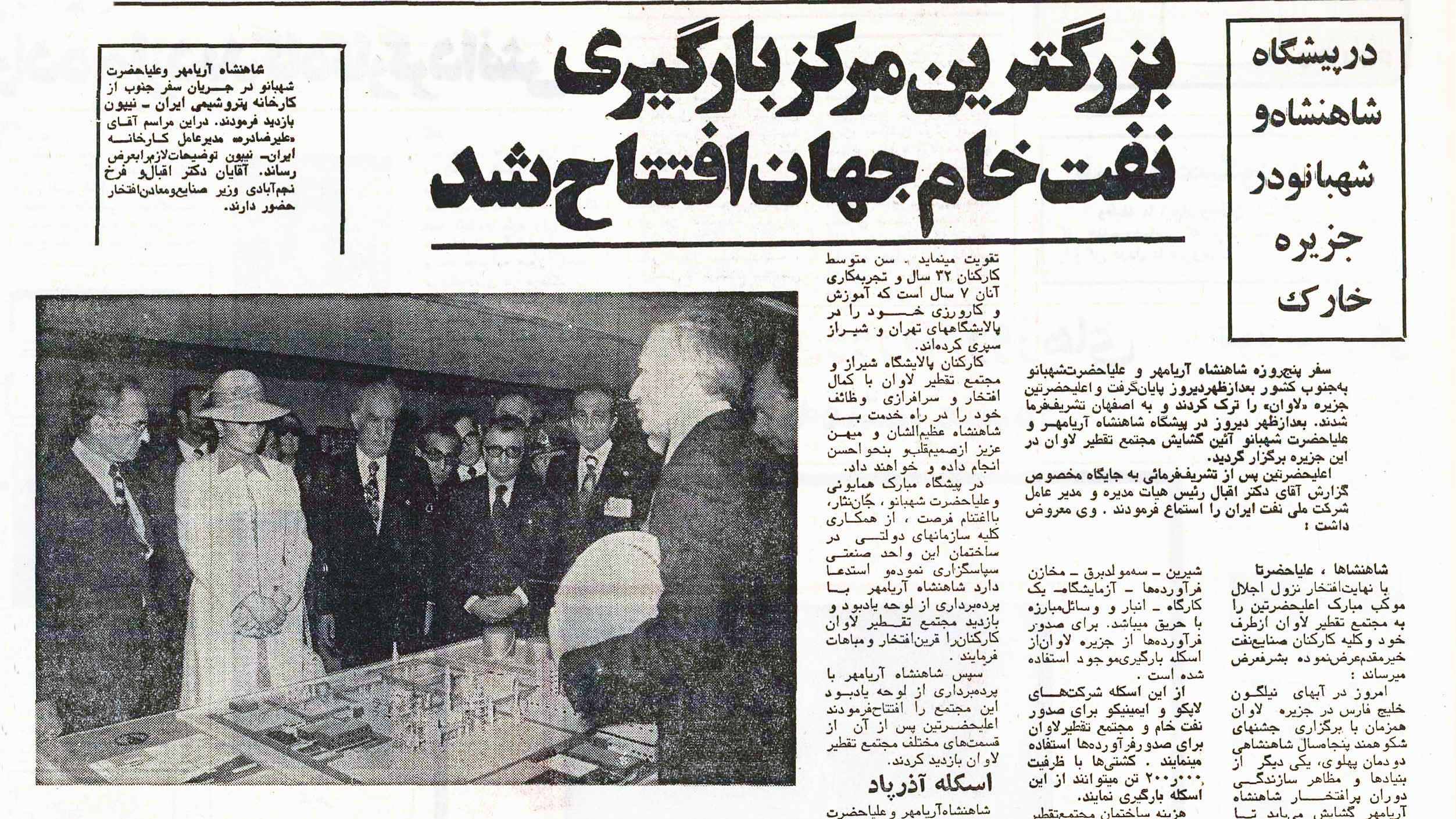 پرونده:ShahanshahAryamehrShahbanouKhargIslandAzarpaadPlatform23Esfand2535.jpg