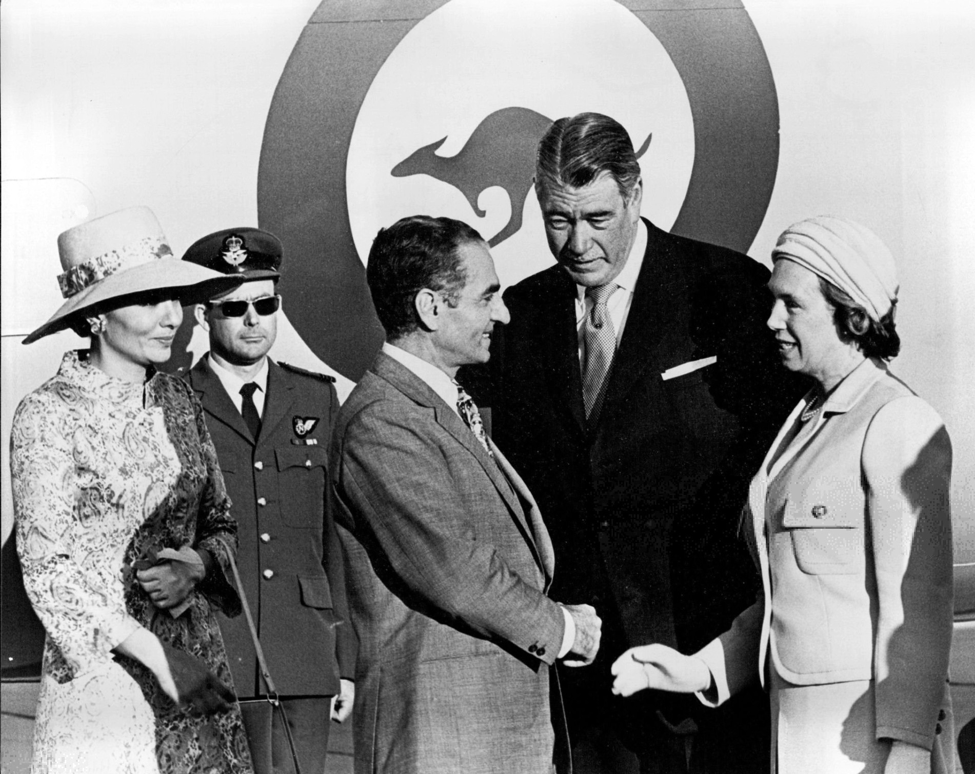 پرونده:ShahanshahShahbanouArrivalMascotVisitSydney1353a.jpg