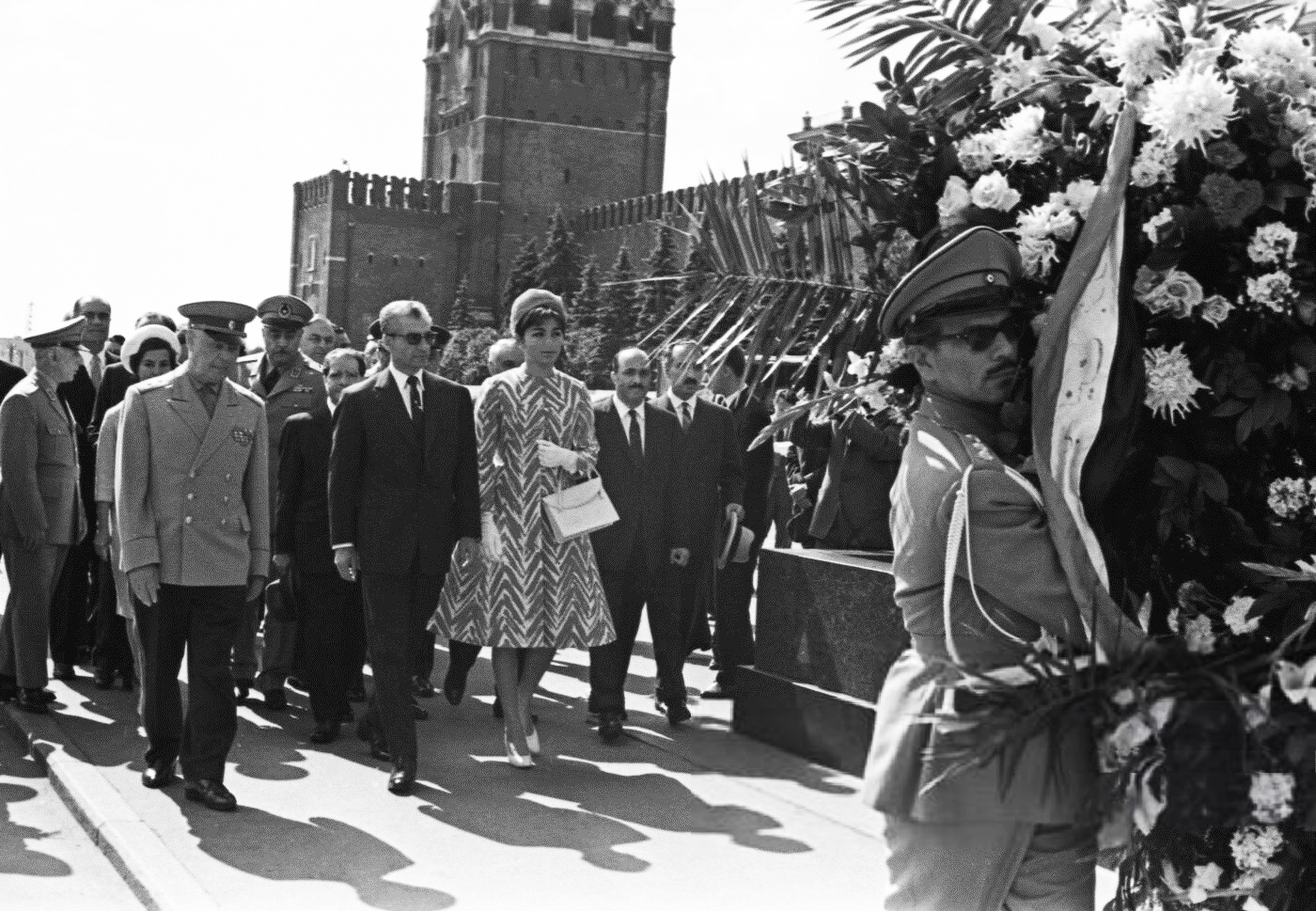 پرونده:ShahanshahShahbanouFlower-laying LeninMausoleum1344.jpg
