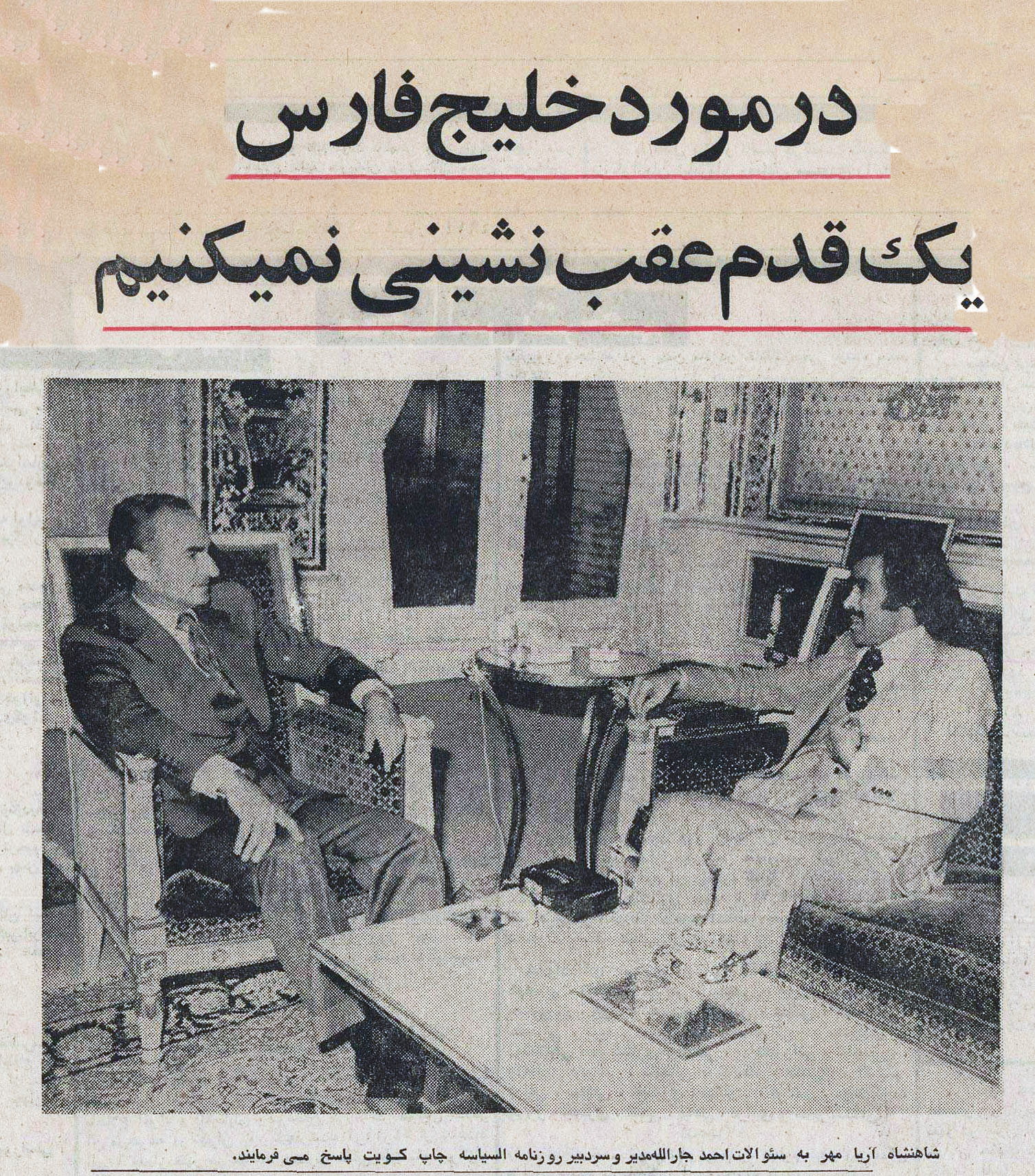 پرونده:ShanshahAryamehrInterviewNewspaperAlsiyasahKuwait30Dey1354b.jpg