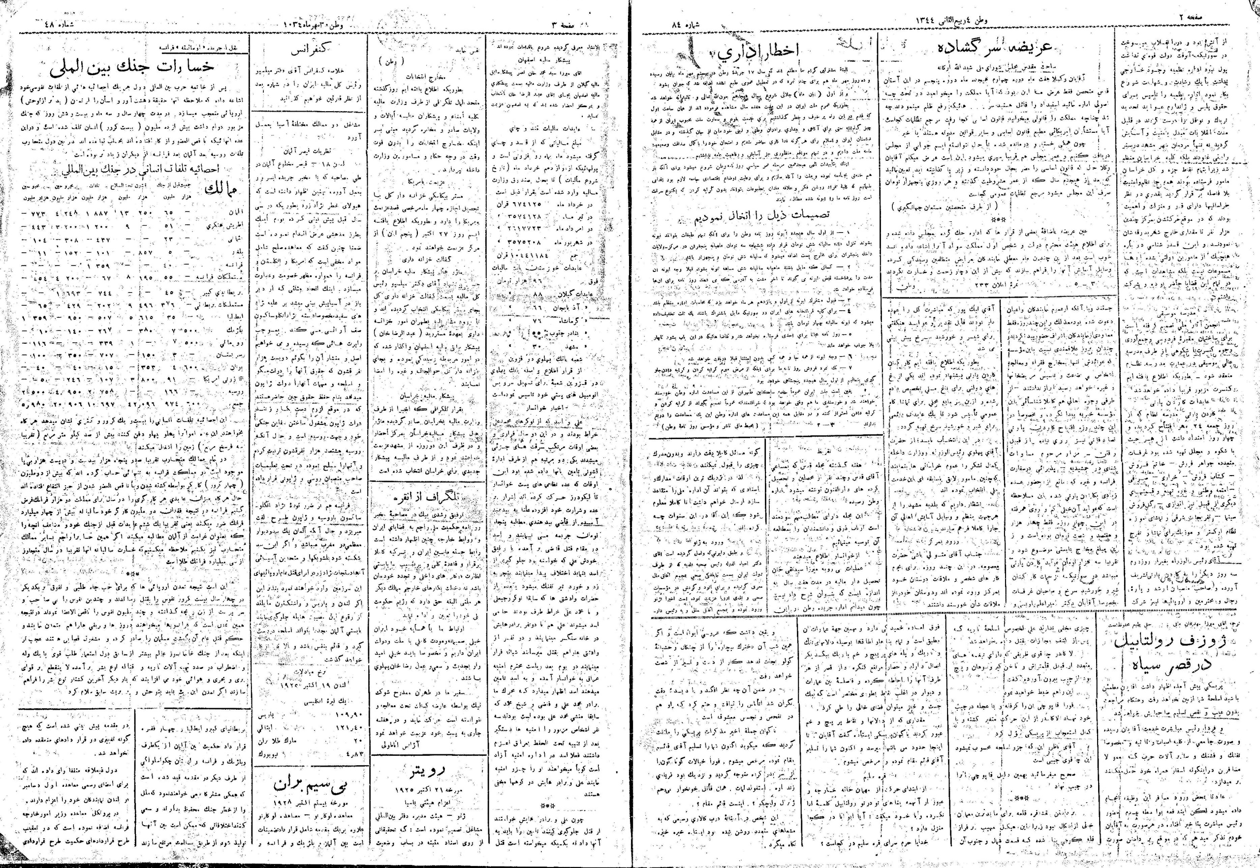 | کنونی | ۱۶ ژانویهٔ ۲۰۱۴، ساعت ۱۶:۱۸ | ۱٬۸۷۵×۲٬۵۷۵، ۲ صفحه (۱۰٫۳۲ مگابایت) | Bijan (گفتگو | مشارکتها) | {{PD-Iran}} رده:روزنامه وطن |