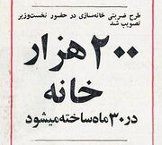 ۱ امرداد ماه ۱۳۵۴ پروژه ضربتی خانه سازی دولت برای ساختمان ۲۰۰ هزار واحد مسکونی، در روز ۳۱ تیر ماه در نشستی که در ساختمان حزب رستاخیز ملت ایران برگزار شد، به تصویب رسید. باشندگان در این نشست که ریاست آن با امیرعباس هویدا نخست وزیر بود، همایون جابری انصاری وزیر مسکن و شهرسازی، فریدون مهدوری وزیر بازرگانی و قایم مقام حزب، روسای بانک‌های رهنی و ساختنان و گروهی از کارشناسان مسکن بودند. بر پایه این پروژه ۲۰۰ هزار واحد مسکونی یک و دو اشکوبه با بودجه‌ای برابر با ۱۸۰ میلیون ریال در درازای ۳۰ ماه از امروز در تهران و دیگر شهرهای ایران ساخته خواهد شد. گفته شد که توزیع جغرافیایی این واحدها با نظر استانداران انجام می‌گیرد.