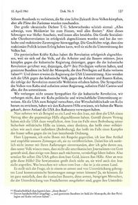 امریکا جانب که را دارد و شوروی جانب که را می‌گیرد؟ شوروی سوی حقیقت را می‌گیرد، طرف خلق‌ها را می‌گیرد، ولی امریکا طرف دیکتاتورها، خودکامگان و جلادان را می‌گیرد. شاه ایران چه کسی است؟ پدرش سرباز فوج قزاق بود. وی قدرت را پس از سرنگونی شاه سابق، به وسیله قتل، زور و دزدی در دست گرفت. و اکنون پسرش که در ایران قدرت را دارد می‌گوید که اشراف زاده‌است و در رگ‌هایش خون آبی[۳] در جریان است. ما اریستوکراسی را از پایه نمی‌پذیریم ولی زمانی که درباره خون گفتگو می‌شود، پس در رگ‌های شاه خون اشرافی وجود ندارد بلکه خون یک راهزن ساده....