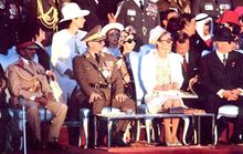 *[[پرونده: | *[[پرونده:ShahanshahiIran2500YearsHistoryParade1.jpg|thumb|left|220px|شاهنشاه آریامهر و علیاحضرت شهبانو در جایگاه ویژه]] | ||