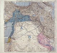 نقشه خاورمیانه پس از بسته شدن قرارداد سایکس-پیکو ۱۹۱۶ میلادی برابر با اردیبهشت ۱۲۹۵