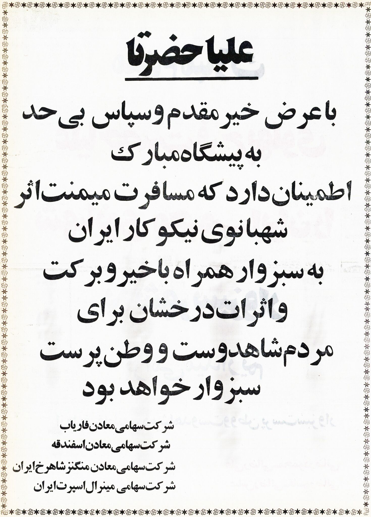 پرونده:ShahbanouWelcomeSabzehwarAzar1353.jpg
