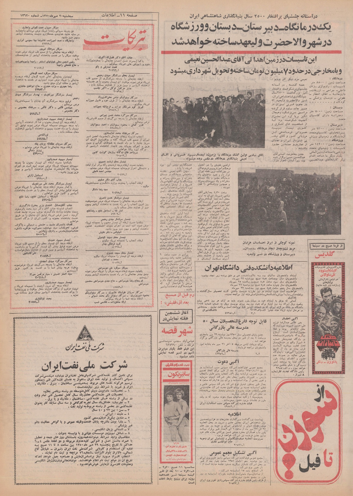 | ۱۸ اکتبر ۲۰۱۴، ساعت ۰۰:۲۷ | ۲٬۴۵۶×۳٬۵۲۷، ۲۹ صفحه (۳۴۳٫۰۳ مگابایت) | Bijan (گفتگو | مشارکتها) | {{PD-Iran}} رده:روزنامه اطلاعات سال ۱۳۵۰ |