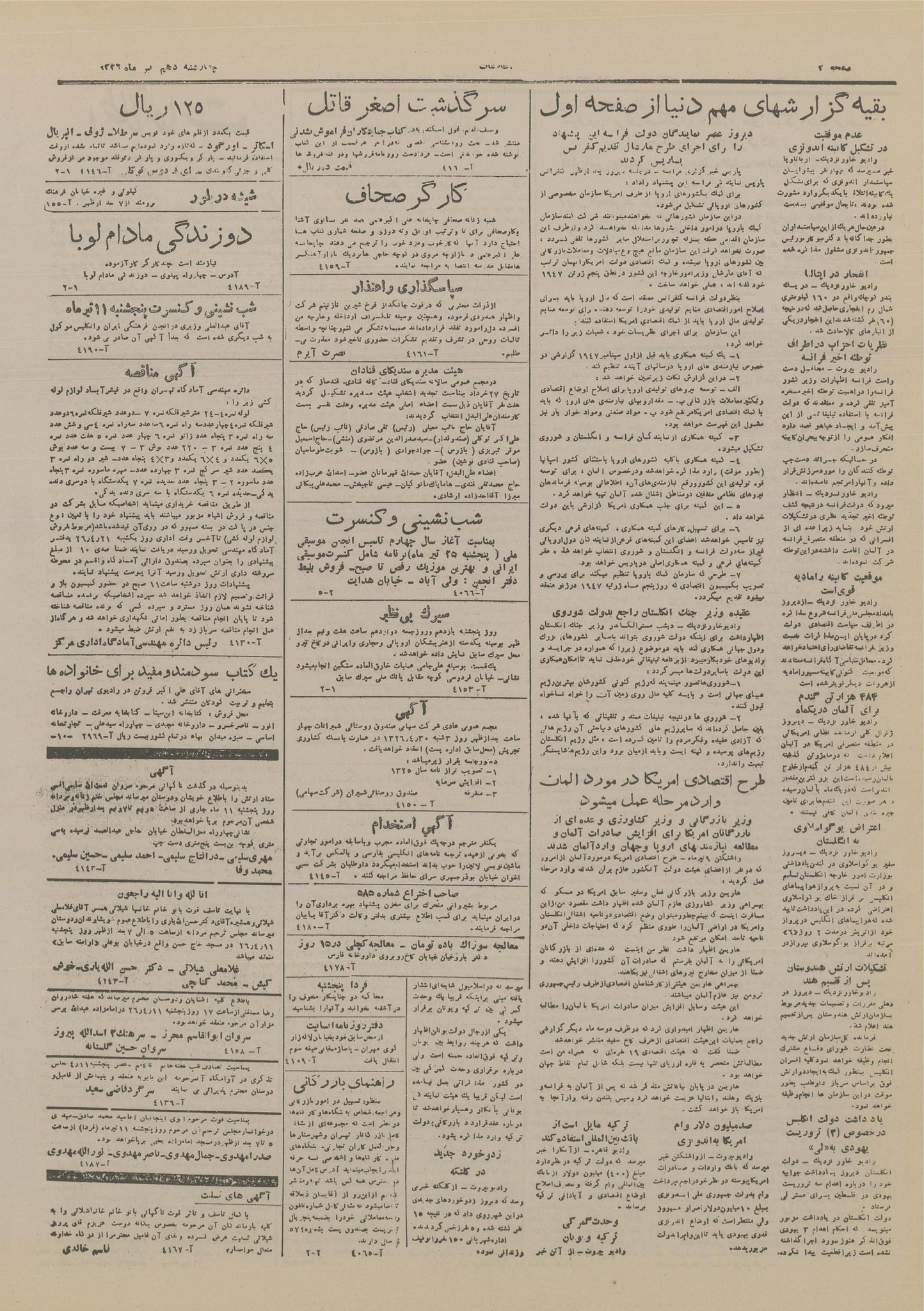 | کنونی | ۱۹ سپتامبر ۲۰۲۵، ساعت ۰۵:۵۰ | ۴٬۵۶۲×۶٬۲۸۳، ۶ صفحه (۵٫۴۷ مگابایت) | Bijan (گفتگو | مشارکتها) | == خلاصه == {{PD-Iran}} رده:روزنامه اطلاعات سال ۱۳۲۶ |