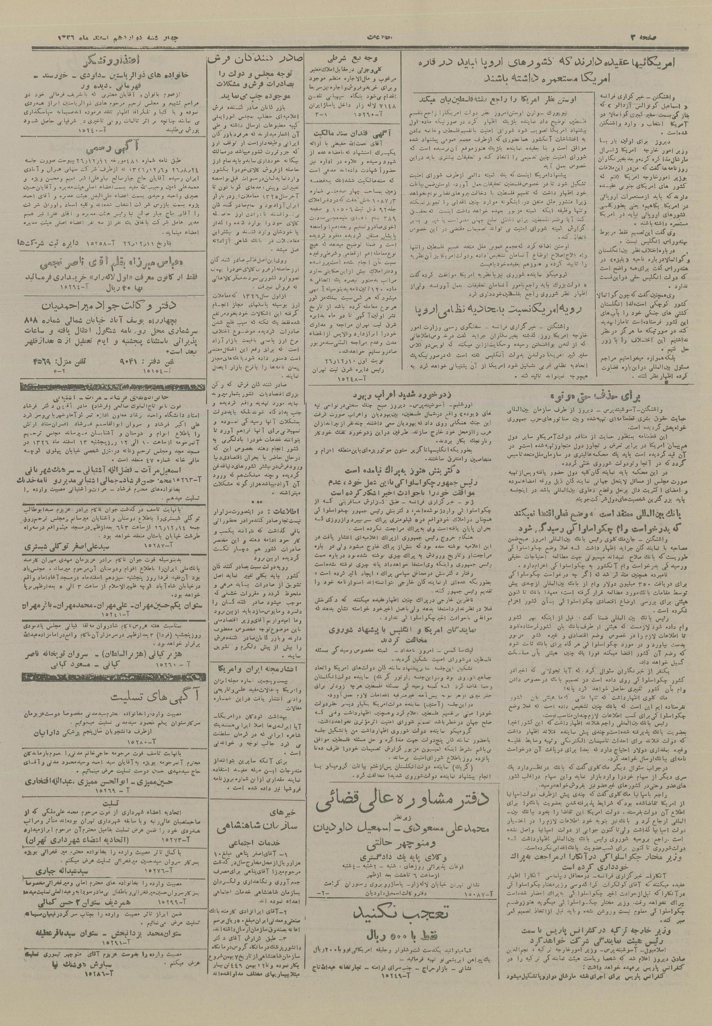 | کنونی | ۲۳ سپتامبر ۲۰۲۵، ساعت ۰۳:۳۳ | ۴٬۴۷۰×۶٬۲۲۵، ۸ صفحه (۷٫۷۸ مگابایت) | Bijan (گفتگو | مشارکتها) | == خلاصه == {{PD-Iran}} رده:روزنامه اطلاعات سال ۱۳۲۶ |