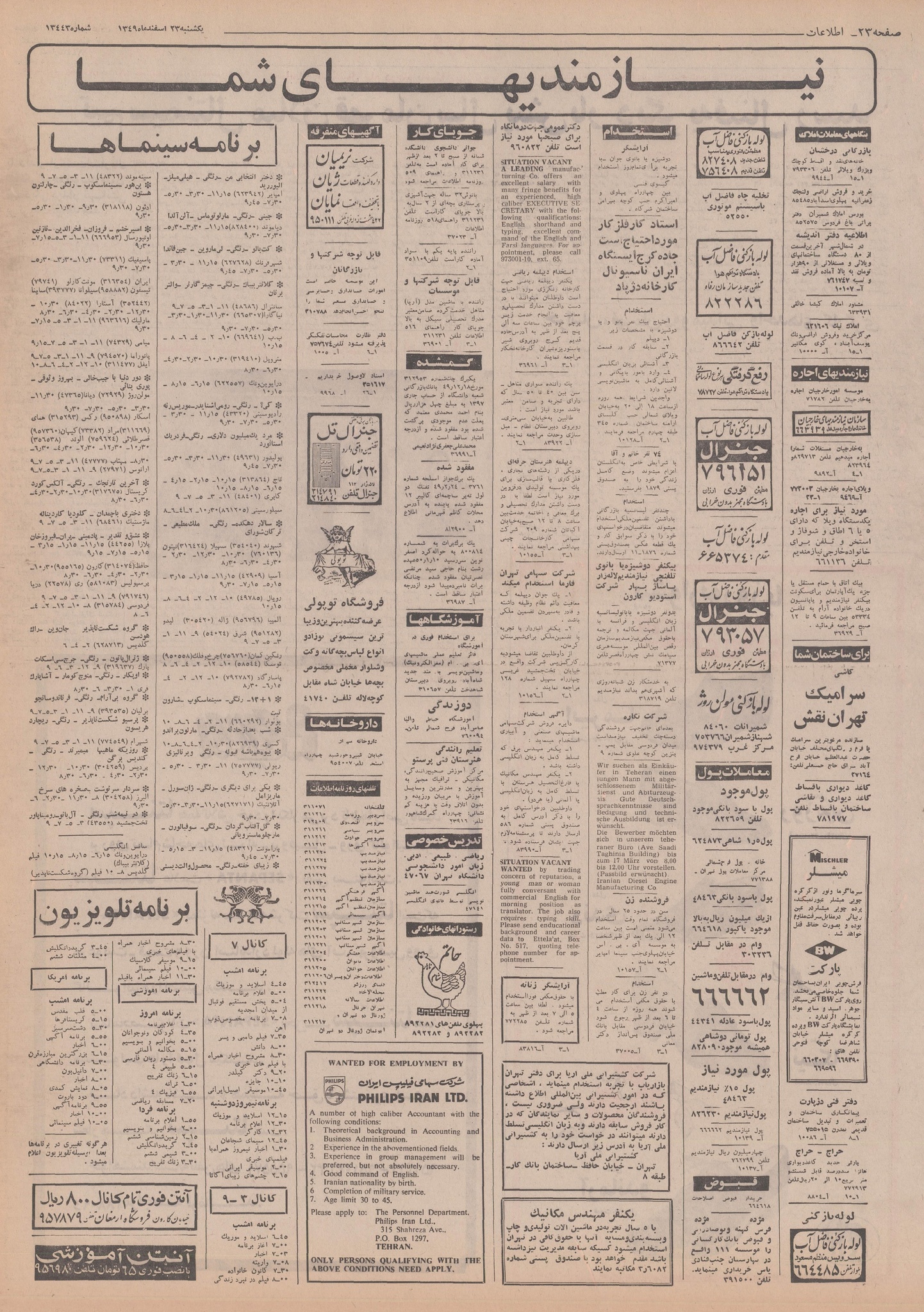 | ۲۱ اکتبر ۲۰۱۴، ساعت ۱۶:۵۳ | ۲٬۴۶۸×۳٬۴۷۷، ۱۵ صفحه (۳۸٫۴۳ مگابایت) | Bijan (گفتگو | مشارکتها) | {{PD-Iran}} رده:روزنامه اطلاعات سال ۱۳۴۹ |
